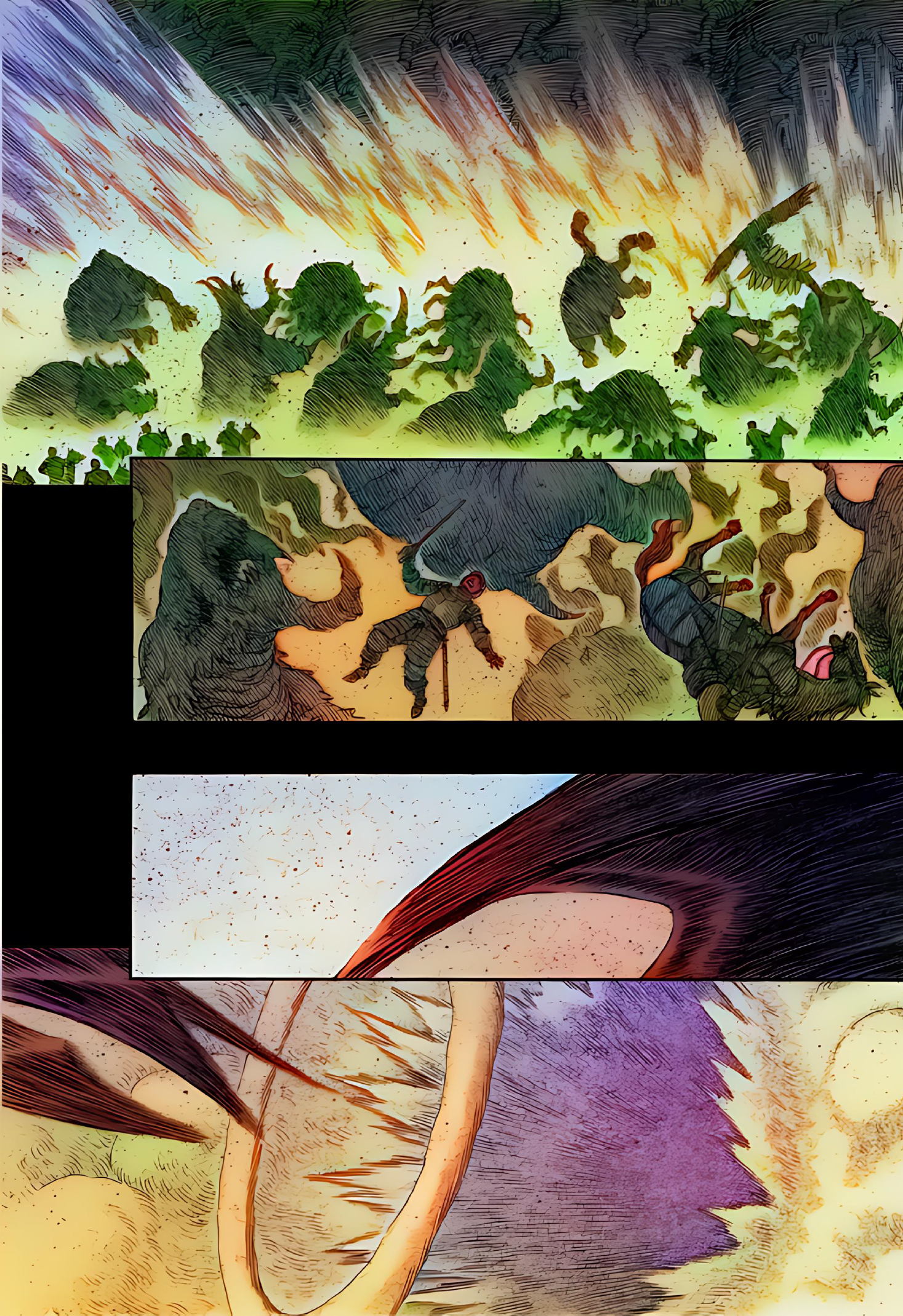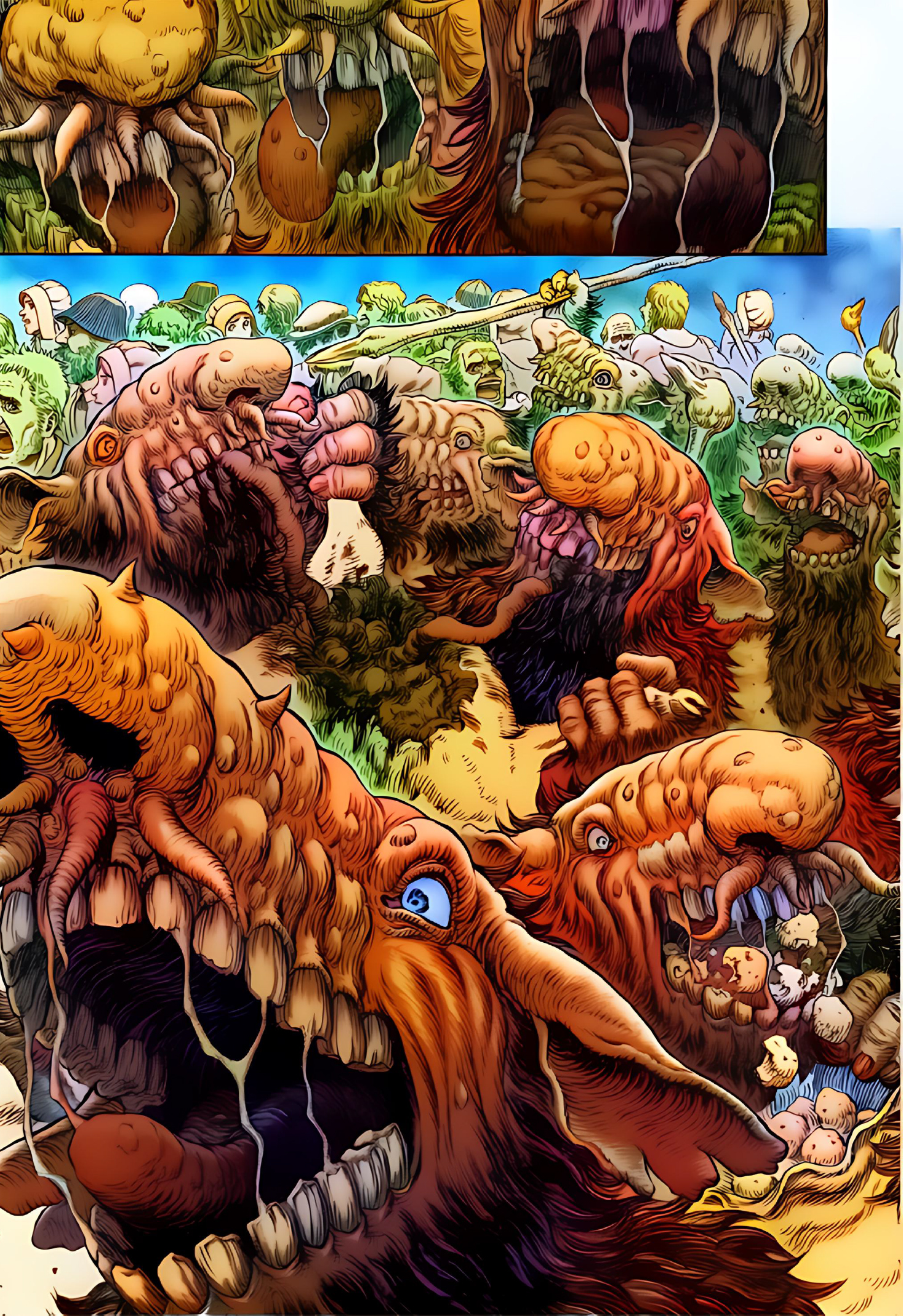 今天就让我们来回顾三浦健太郎的神作《剑风传奇》单行本第34卷(剑风系列个人最喜欢的1卷),不用我多说,我相信很多看过的漫迷都知道这本第34卷漫画书有多厉害,里面超越想象的横幅跨页神乎其技,说它是史上最强单行本也不为过,今天就让我们再次重温这本惊为天人的漫画书!