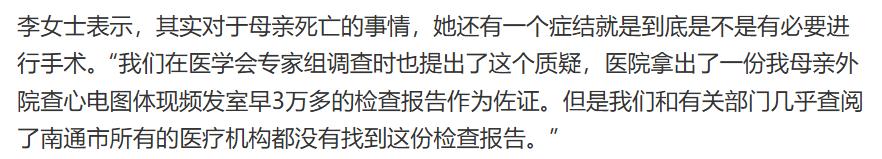 事故发生后,李女士对母亲进行该手术的必要性提出了质疑。她表示,家属曾咨询北京专家,专家认为宋女士的情况没有手术必要,药物控制即可。