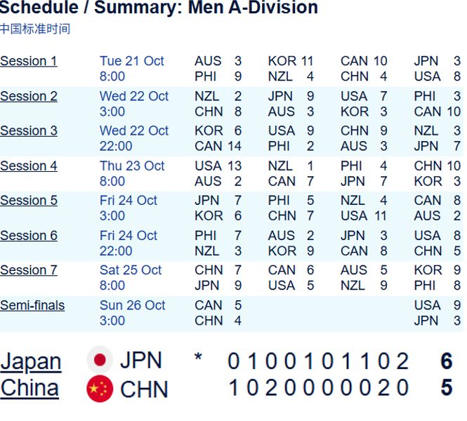 最终在季军战上,中国男队5-6不敌日本获得第四名。