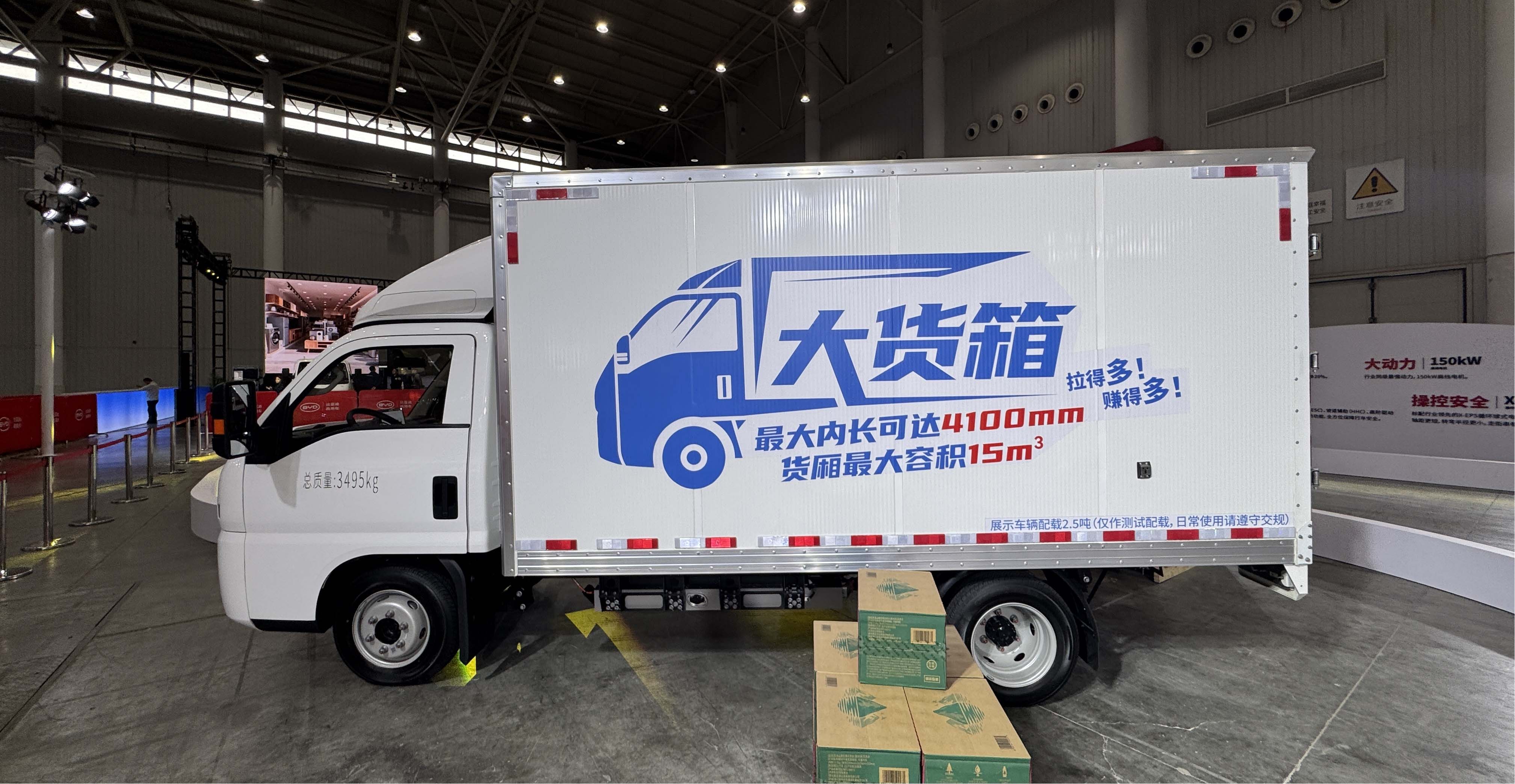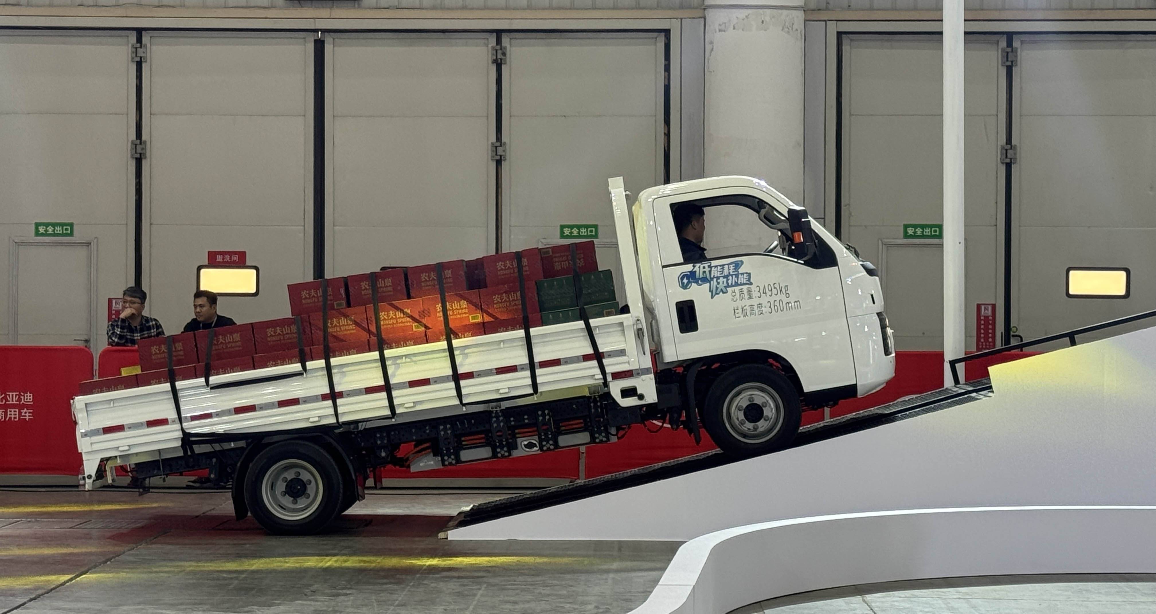 展会现场还专设了1400平方米动态体验区,有陡坡、连续弯道等路况。在上市前有幸试驾体验了一番轿卡T4,在面对较大坡度时,150kW电机能提供充沛且平顺的动力输出,即便在满载状态下也能轻松稳健地完成坡起,避免了传统小卡在重载上坡时的乏力感。而在连续的S弯道中,得益于其扎实的底盘调校(前后板簧片数提供多种选择)和后双胎的设计,T4为车辆提供良好的侧向支撑,增强了过弯时的稳定性。并且其相对紧凑的车身和较小的转弯半径,使得驾驶较卡T4很轻松,不会有很大的负担,对于狭窄的路况也具备不错的通过性。