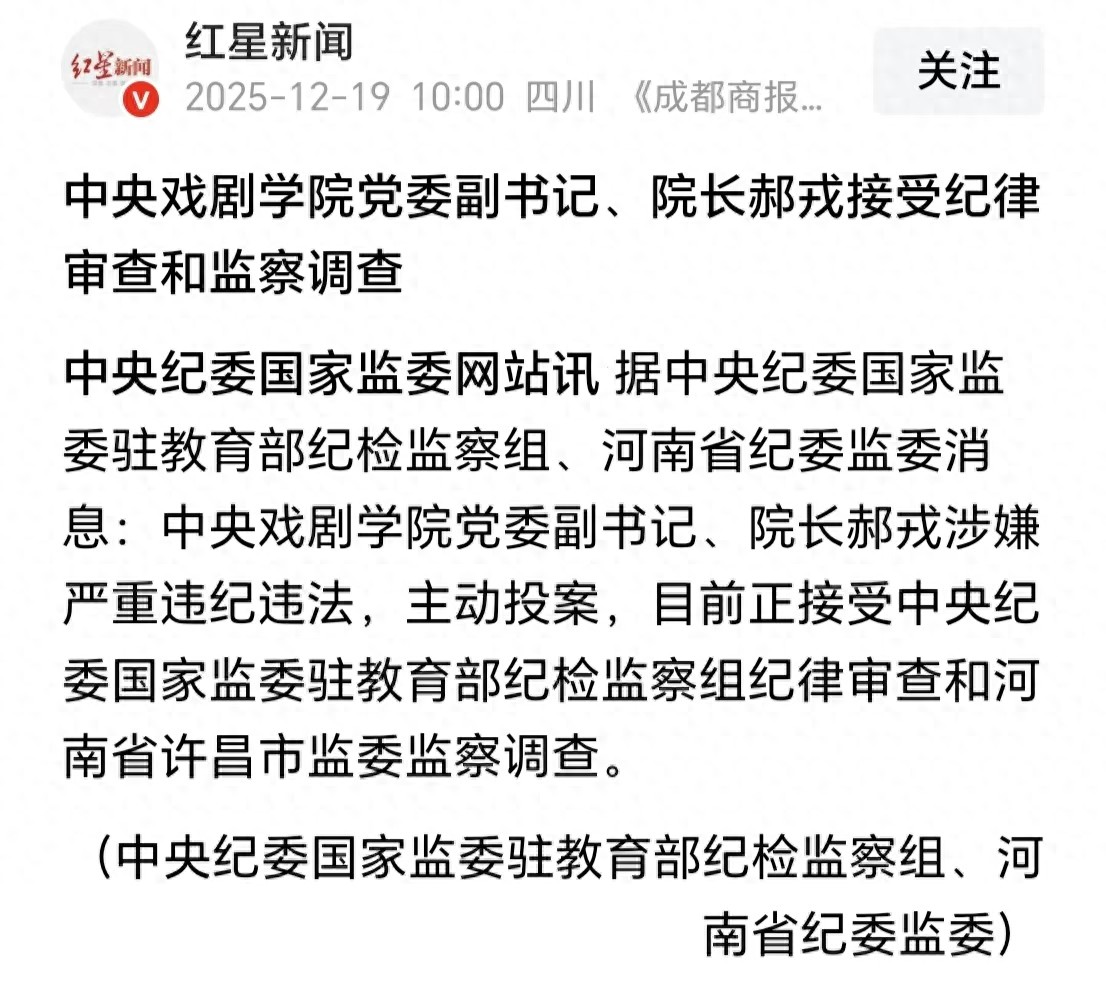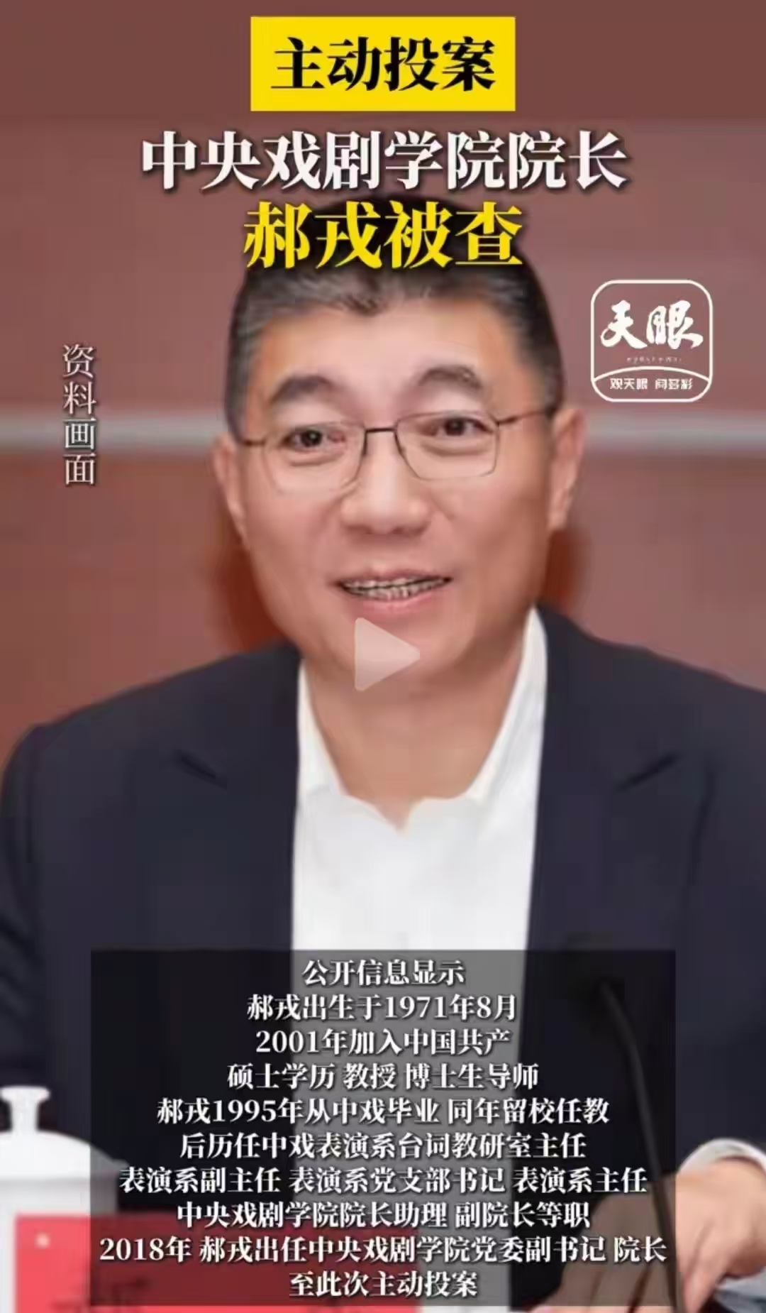 中央戏剧学院院长郝戎,这位在中戏摸爬滚打了整整30年的老教授,主动向纪检部门投了案。