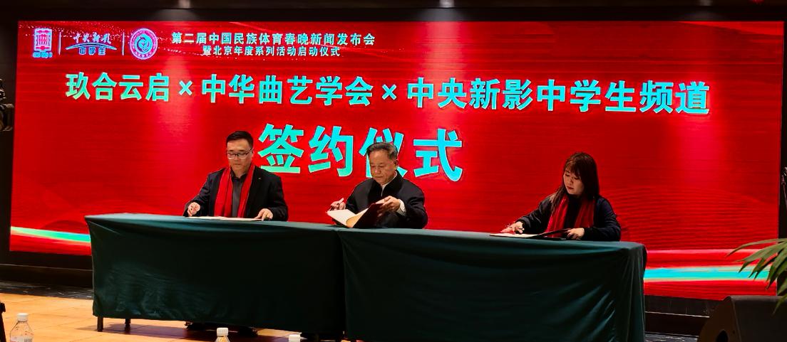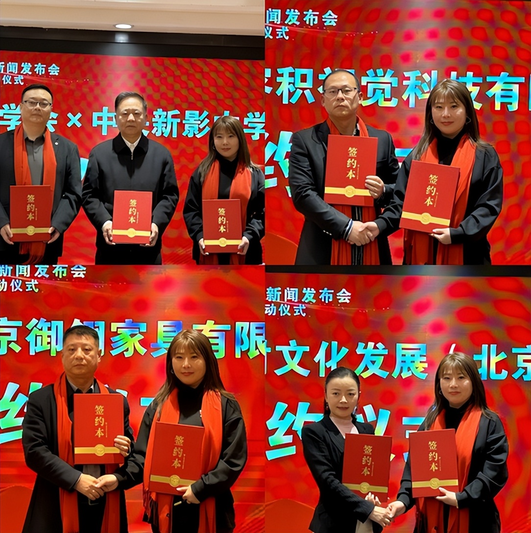 仪式上,中华曲艺学会、新影集团中学生频道、玖合云启(北京)国际传媒有限公司等作为发起单位签署了合作协议;组委会秘书长穆迪代表组委会分别与全球和平村文化发展(北京)有限公司、北京御翎家具有限公司、北京容积视觉科技有限公司等合作商家进行了签约。