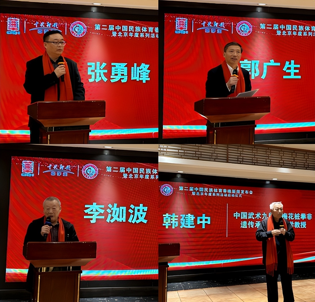 (记者 常魁星 韩杰)在丙午年春节即将到来之际,11月24日,第二届中国民族体育春晚新闻发布会暨北京系列活动启动仪式在北京隆重举办。国家广电总局管理原局长郭峰,中央民族大学原校长郭广生,中央保健局专家组组长朱兴,华夏文化促进会会长项玉章,中华曲艺学会常会副会长葛庆龙,中国广电联合会全民国防宣传教育委员会会长郑志宏,中央新影中学生频道总监张勇锋,中国武术九段、公安大学教授韩建中,国家级非遗心意六合拳传承人李洳波,中央广播电视总台“云听”首席战略官李正国,亚太体育联合会主席马文广,环球网副总经理李留申,人民日报《中国城市报》社中国城市网主任韩杰,中国农村信用合作报副社长党云帆,华夏文化促进会理事常魁星等出席发布会。闫嘉欣担纲活动主持人。