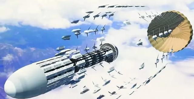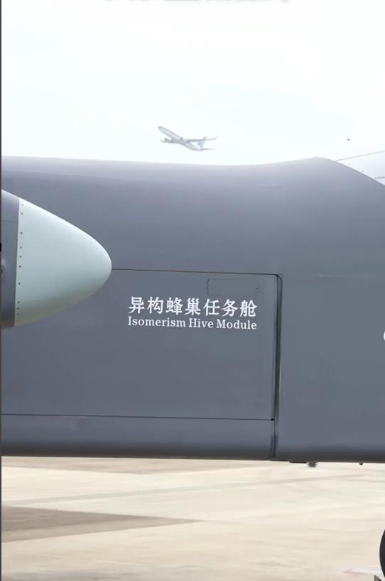 根据相关消息,这个“蜂巢”里装载的是大量的“无人模块”,可以根据需要释放小型无人机或巡飞弹,形成空中无人集群,也就是所谓的“蜂群”作战模式。