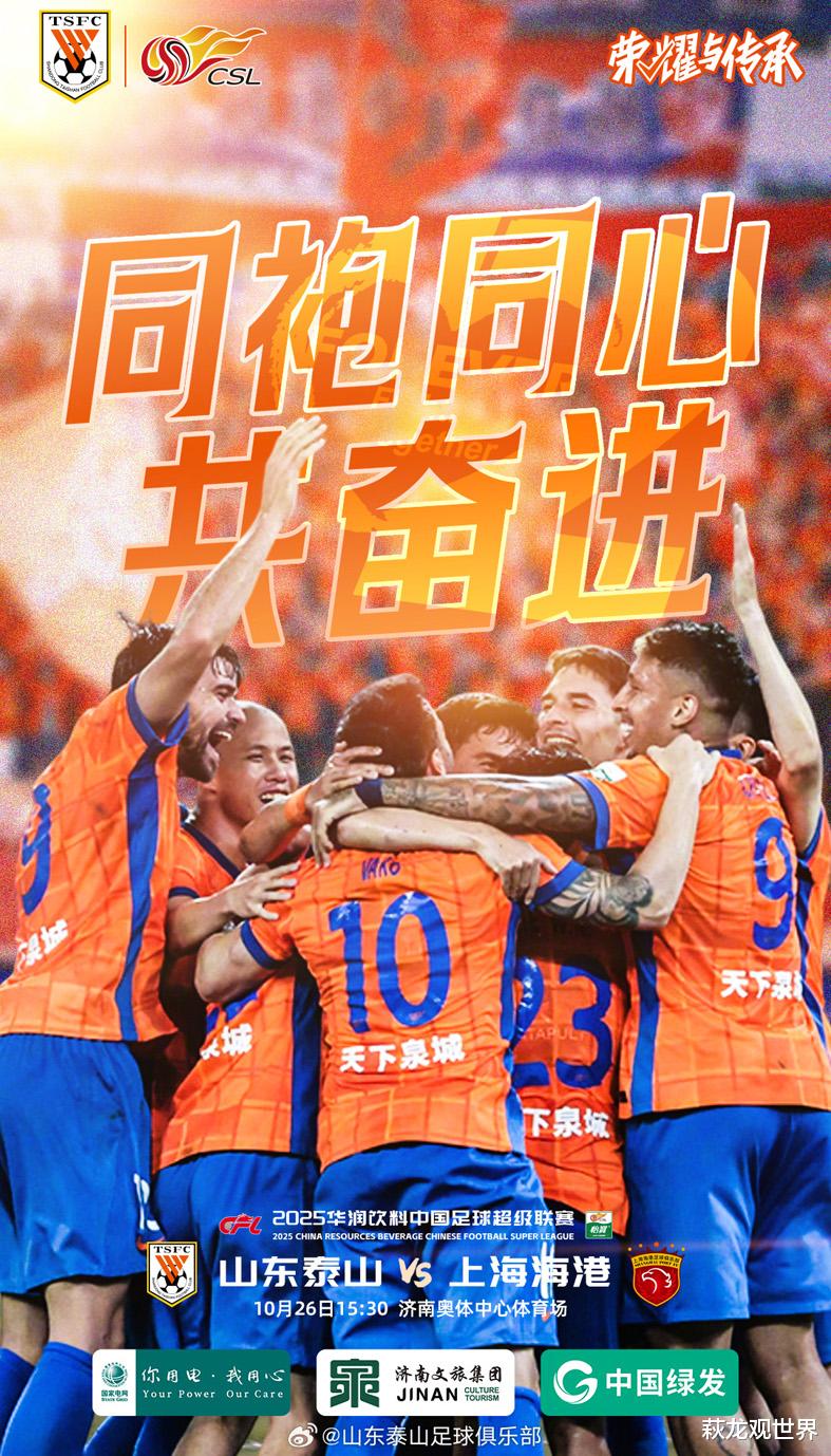 中超联赛第28轮全面开战,10月26日15:30,山东泰山主场迎战上海海港,这是本轮重头戏,也是海港卫冕最关键一战。央视体育频道CCTV-5、山东电视台体育休闲频道、五星体育进行直播,球迷也可通过咪咕视频APP、移动高清、咪视界、央视体育客户端、央视频等网络平台观赛。