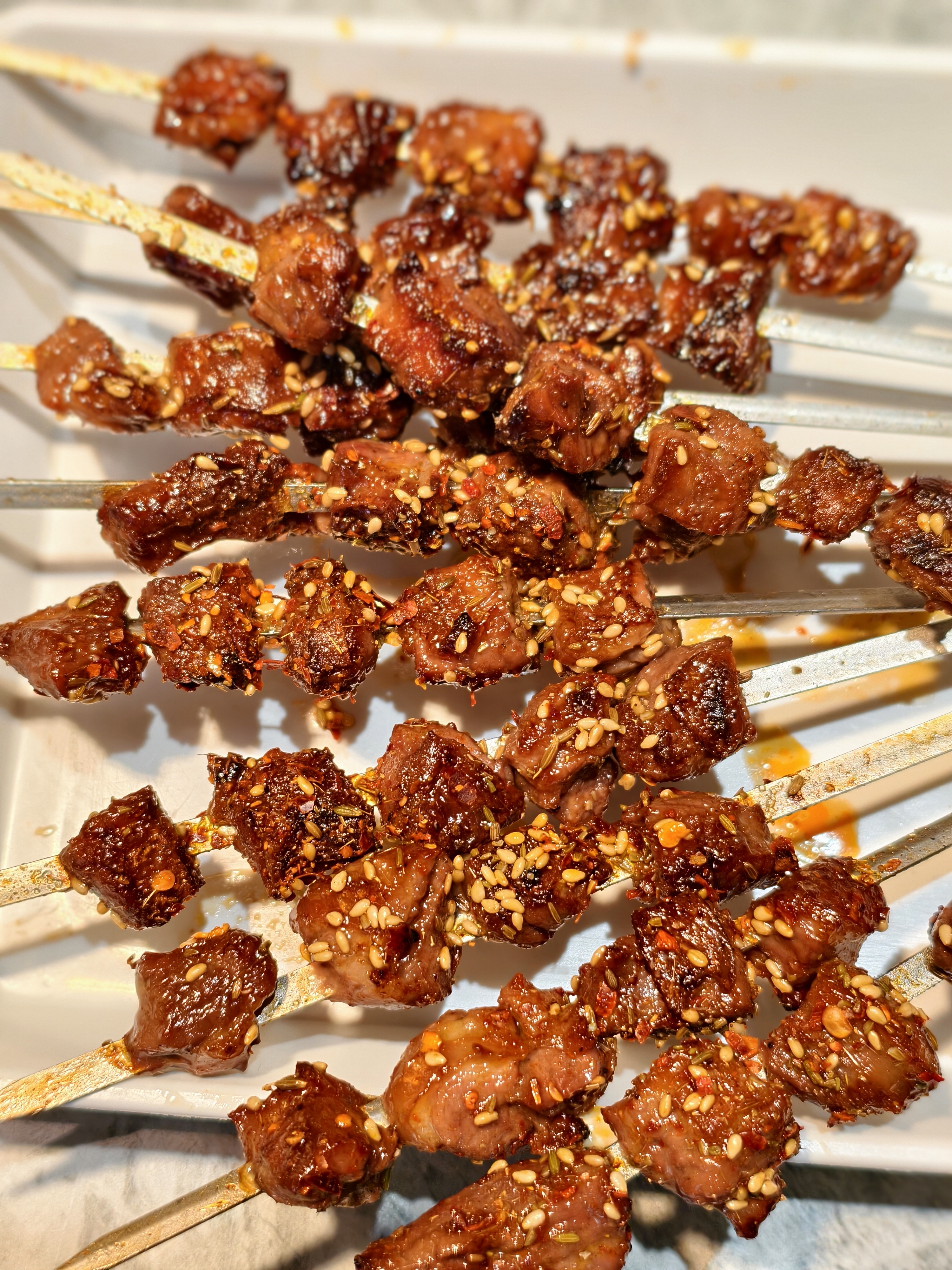 烤串是把东北烟火气焊在舌尖上牛肉粒烤得焦香流油,撒满芝麻和调料,外酥里嫩越嚼越香;烤肠、烤豆腐全是裹满料的快乐,每一串都在嘴里放烟花!