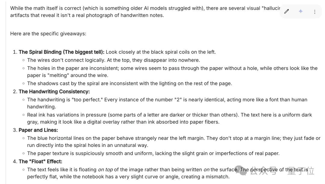 我们截图发给Gemini,Gemini也说是AI生成的,仔细看其笔迹过于完美,每个数字“2”的写法几乎完全一样。