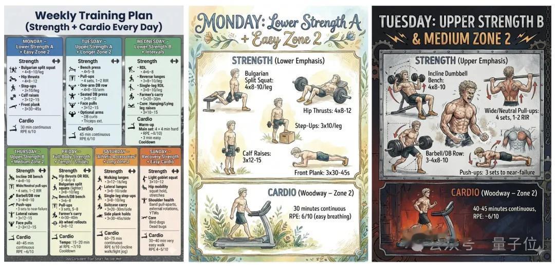 没过几个小时,他又发了一条推文,用Nano Banana Pro定制了每周撸铁计划,还直接生成了可打印的海报。