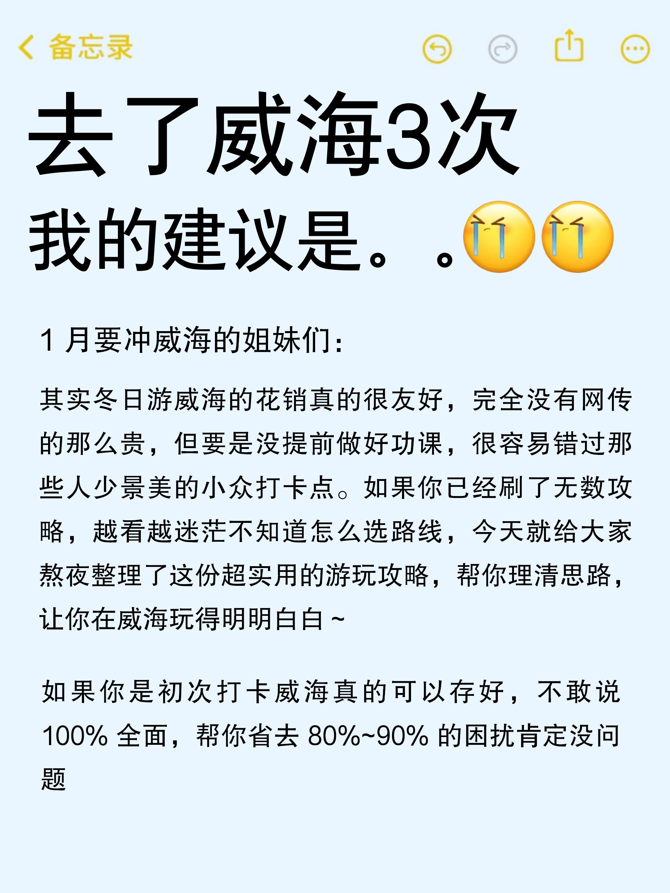 刚从威海回来啦……海边的冷风真的吹清醒了!1-2 月来威海玩的宝子直接抄作业!!做好攻略真的玩得很开心,看完立省90%的烦恼~