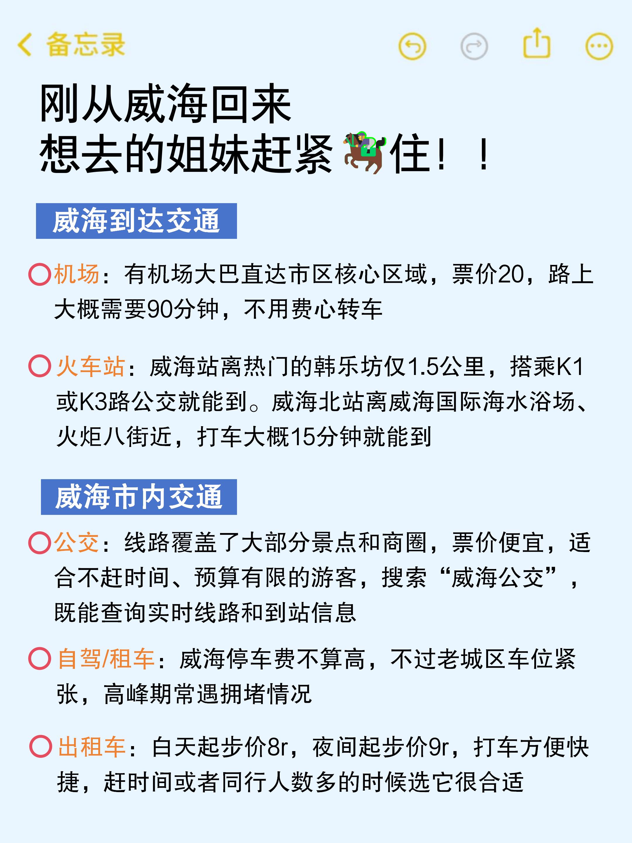🚌公交:支持扫ma乘车,提前申领威海电子公交卡即可,覆盖主要景点