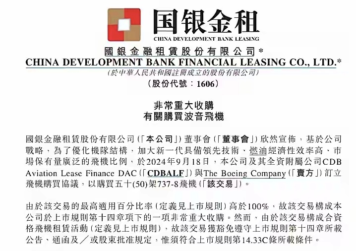 422亿元!中国公司宣布购买50架波音客机。这家中国公司是国家开发银行旗下的金融租赁公司,这次购买的飞机型号是波音737max-8,数量50架,金额60亿美元,大约422亿元,交付时间2028年到2031年。