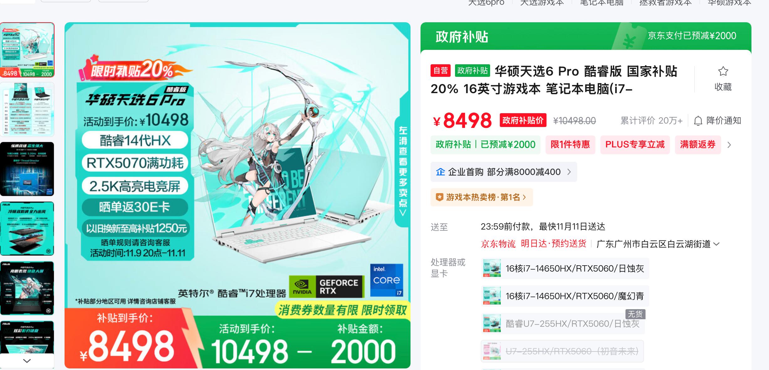 而在众多游戏本中,华硕天选6 Pro系列全系多款机型都有不同程度的“无套路”直降,更关键的是,英特尔和AMD都确认2026年上半年不会推出新架构处理器,现在购机至少能保证两年内性能不落伍。以下是三款降价后,价格来到了“史低”的机型,大家可根据自己的需求选择: