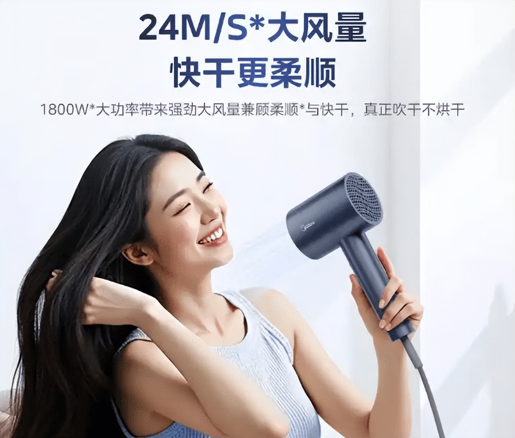 配备转速达20000转/分的高速马达,加上6翼动平衡扇叶设计,风量很大。同时支持多档风温风速调节,可根据不同发质和需求进行自由调节。同时机身小巧,还采用可折叠手柄设计,方便收纳和携带,适合日常使用和出差旅行。此外它的磁吸式风嘴能360度旋转不脱落,便于调整吹风角度,方便做造型;电源线加长到1.8米,可在浴室任何角落自由操作。