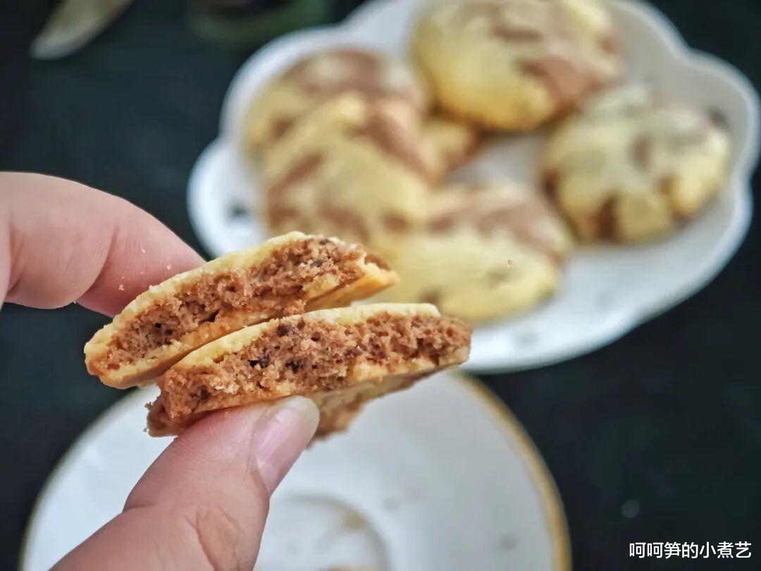 每一块饼干都像雪花一样的裂纹,看似复杂,其实一点都不难,只需要搅一搅拌一拌,酥脆的黄油曲奇下包裹着布朗尼巧克力的浓郁甜香,一口下去双重风味和口感,超级满足。