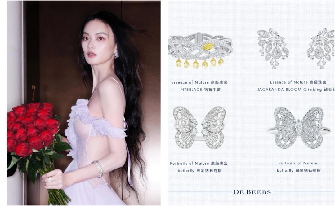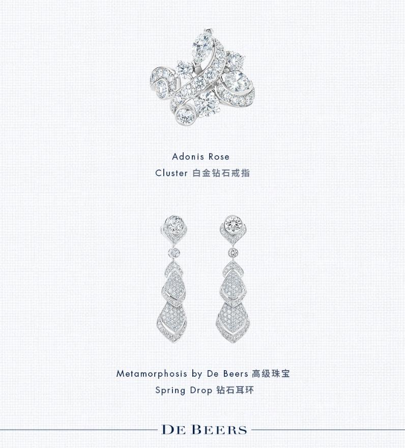 修身黑裙来自Julien Fournié2025年春夏高定,搭配Metamorphosis by De Beers高级珠宝系列耳环以及Adonis Rose系列戒指亮相
