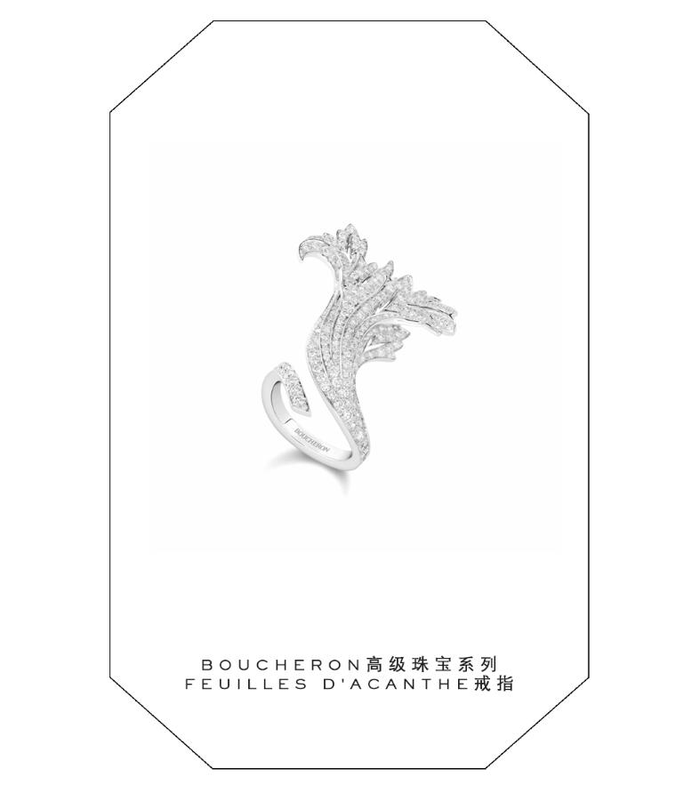 夸张的耳环来自Serpent Bohème系列,该系列问世于1968年,是名副其实的雕金杰作。历经时间沉淀与世代传承,如今已成为品牌别具复古风格的经典之作。搭配高级珠宝系列Feuilles d'Acanthe戒指,焕发绮丽风致
