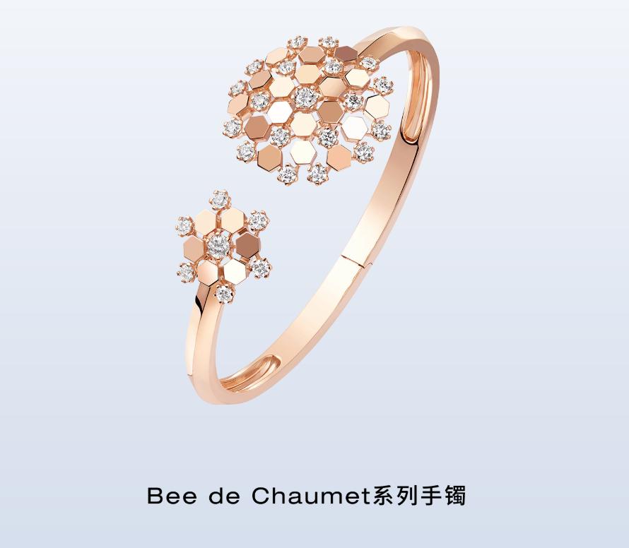 珠宝则来自尚美经典的蜂巢系列Bee de Chaumet,六边形蜂巢元素与明亮式切割钻石错落相间,立体造型宛如盛开的太阳花,绽现灵动蜂采