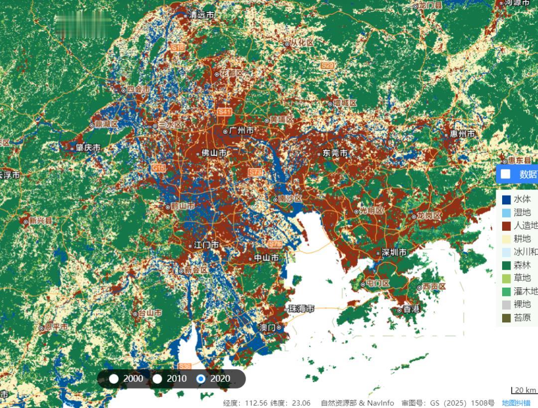 经济地理意义上的珠三角地区,位于广东省中南部,范围包括广州、佛山、肇庆、深圳、东莞、惠州、珠海、中山、江门9个城市。总面积55368.7平方公里,人口大约7900万,2024年GDP大约11.54万亿元。假如加上香港和澳门两个珠江口外的特别行政区,也就是粤港澳大湾区,面积大约5.65万平方公里,人口大约8700万,GDP总量接近人民币14.8万亿元。