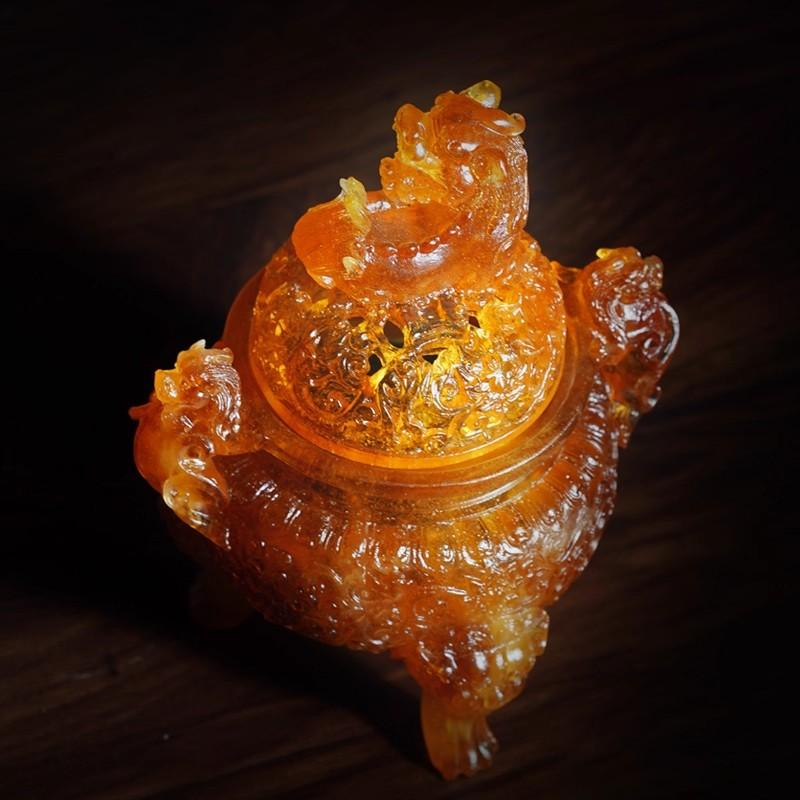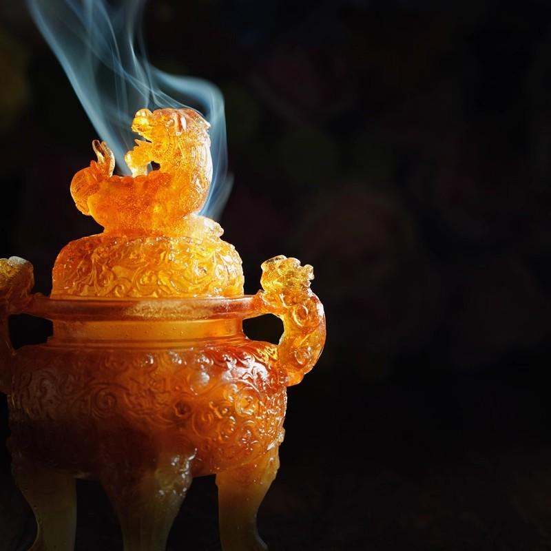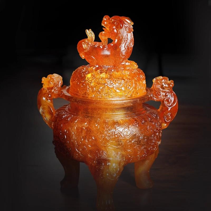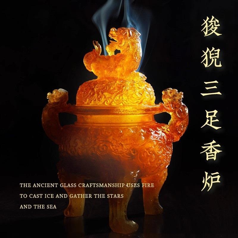 当瑞兽狻猊与古老的香炉相遇,再披上古法琉璃这层神秘的外衣,又会碰撞出怎样的火花呢?