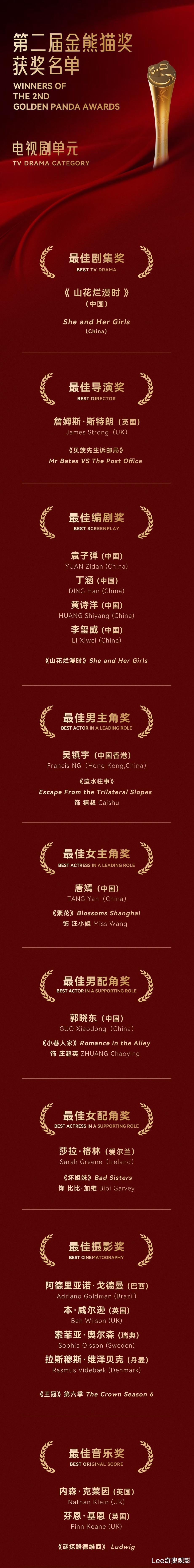 唐嫣终于如愿拿下最佳女主角,获奖后她说,“谢谢评委会和每一个老师。记得去年的某一天,我曾说过欠汪小姐一个奖,那是我作为一个演员替那个在黄河路上拼命奔跑的女孩说出的一句心里话,今天谢谢你们让我的心愿得到了最圆满的回响。感谢这个时代能让更多的汪小姐们有自己的码头,也谢谢金熊猫奖让更多的人看到新时代中国女性的内心力量。也要谢谢王家卫导演把这样一个鲜活的角色交给我,带我进入《繁花》的世界。” 从屏幕里的坚韧汪小姐,到领奖台上的实力演员,每一份付出都化作此刻荣光,实至名归!
