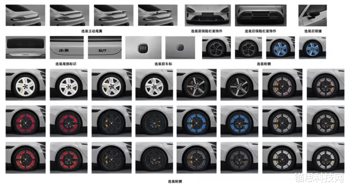 外观设计上,新一代小米SU7基本延续现款经典造型,车身尺寸保持4997×1963×1455mm(轴距3000mm),风阻系数维持0.195的优秀水平。前脸格栅中部搭载毫米波雷达,标志性“水滴大灯”远光最远照射距离达400米,保障夜间行车安全。侧面溜背式动感造型搭配层次感线条得以保留,全系标配前窄后宽轮胎(前245mm/后265mm)及前四活塞固定卡钳,新增全新造型20英寸轮毂与红色刹车卡钳,运动气息拉满。此外,新车提供含经典梅花轮毂在内的多款轮毂选择,还可选装熏黑处理的前后保险杠装饰件,满足个性化需求。
