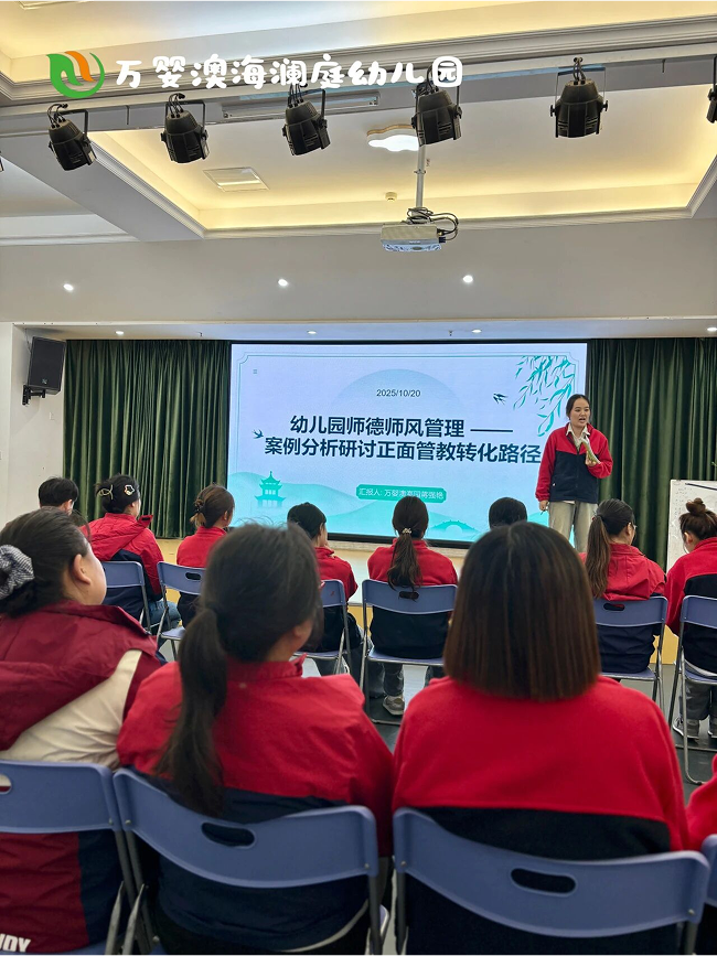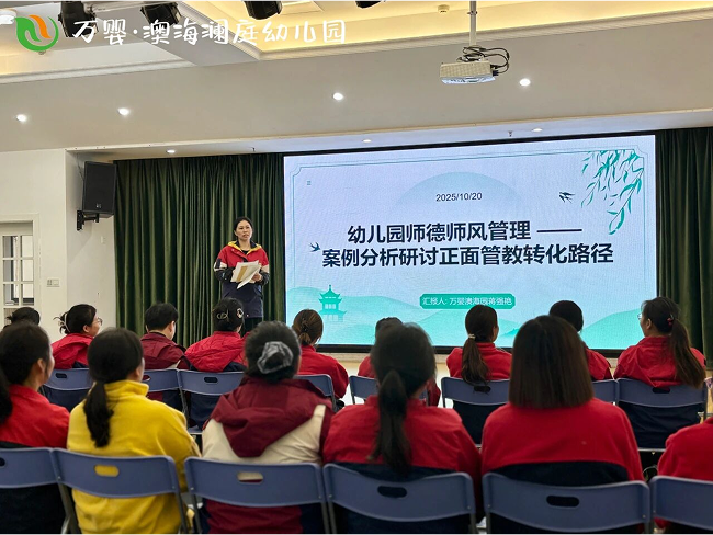 师德是幼教人胸前最亮的勋章,也是守护童心的“生命线”。在10月20日师德师风警示日,万婴·澳海澜庭幼儿园教学部门开展专项培训,以案例为镜、以责任为绳,引导老师们筑牢职业道德防线,让“爱心与耐心”成为教育的底色。