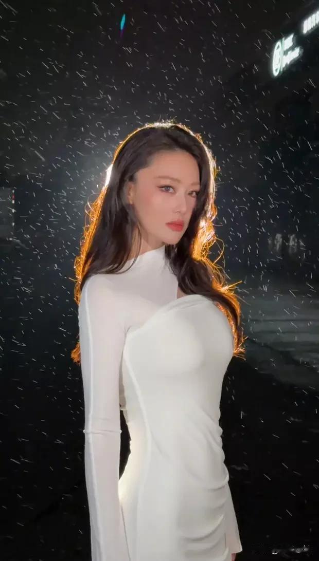 点开照片一瞅,嘿,还真有那股子早年明星海报的味儿!她穿了件白色露肩装,站在雪地里,逆光那么一拍,肩膀线条溜直,锁骨窝能搁下颗樱桃似的。碎雪粘在头发上、肩膀上,不觉得冷,反倒衬得她皮肤白得晃眼,跟刚剥了壳的鸡蛋似的,保养得是真到位。
