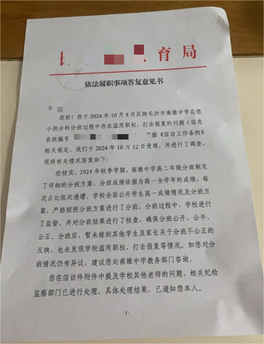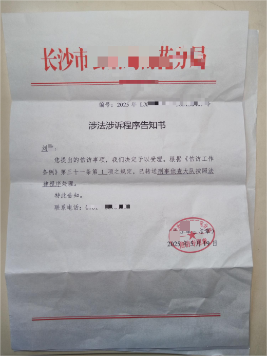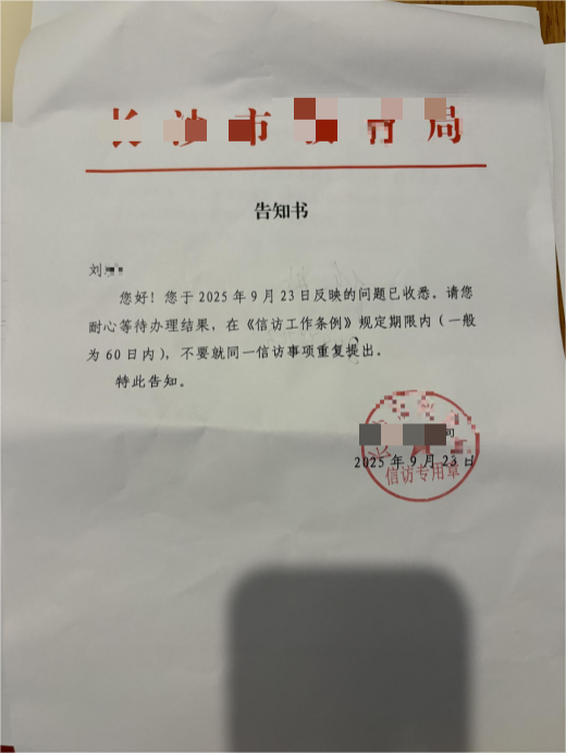 截至目前,刘女士的诉求获多部门关注:2025年5月19日,雨花公安出具《涉法涉诉程序告知书》,受理反映并转送刑侦大队;2025年9月23日,长沙市教育单位告知收悉问题,将60日内反馈;湖南省公安厅也转送其反映事项至长沙相关部门甄别。