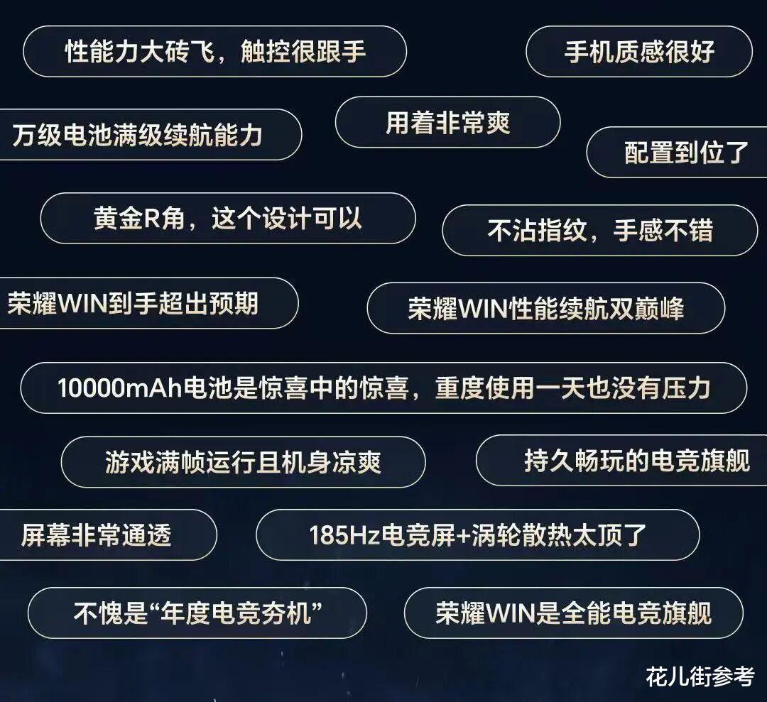 所以说,在荣耀WIN之前,市场上出现的是“电竞版手机”,而不是真正意义的“电竞手机”。无论是设计还是理念,荣耀都真正跳出了传统的模式。在社交媒体,那些已经真正实操过的用户,也纷纷表示“这才是游戏党要的硬货”“荣耀WIN这样的产品才配得上我”“不愧是年度电竞夯机”。