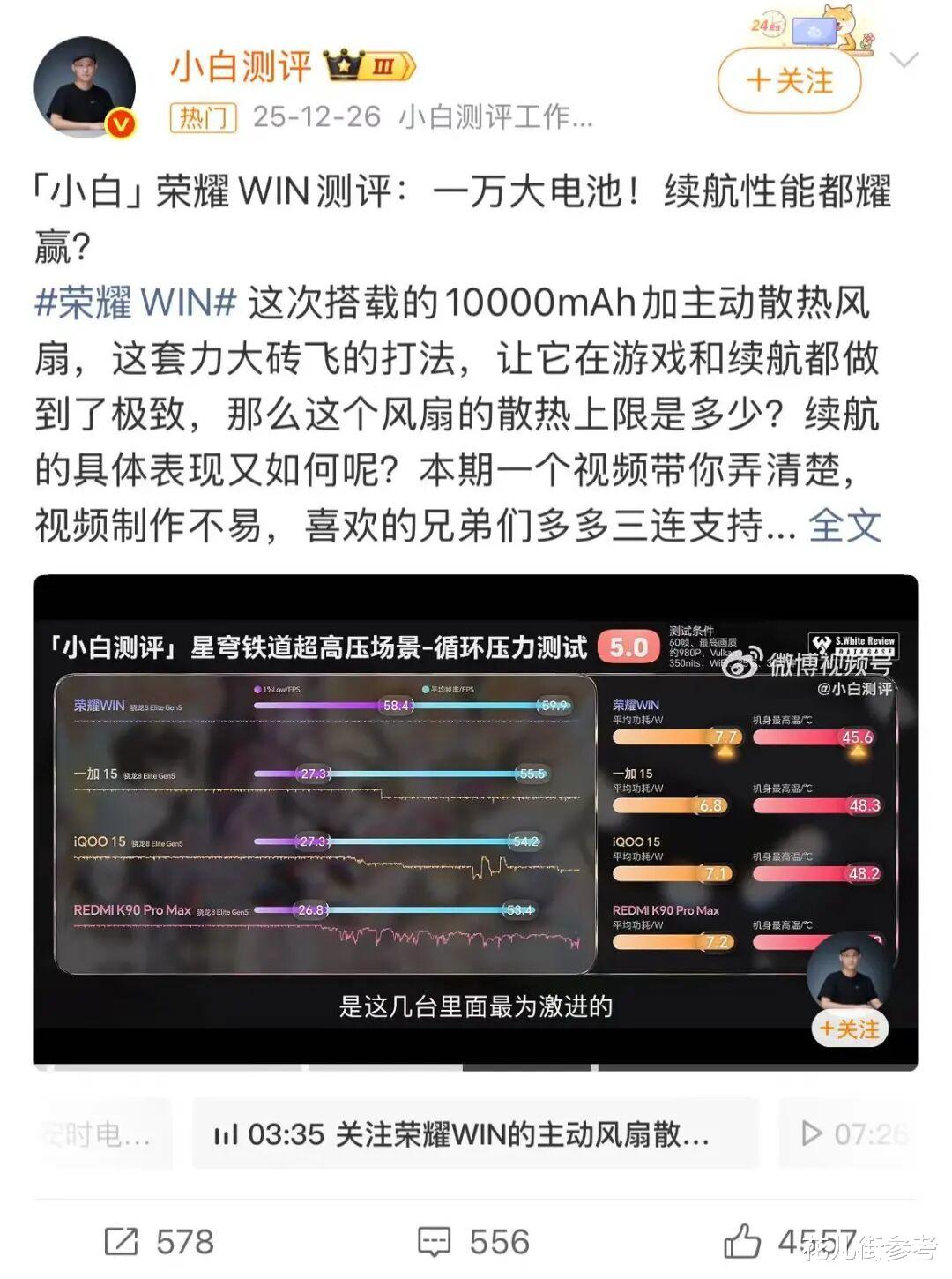 续航、护眼、性能、影像这些赛道,荣耀已经持续深耕很多年,深厚的技术底蕴,甚至有比行业领先的质量品控管理体系。也因此,荣耀WIN系列才能在做好性能旗舰的基础上,把游戏体验推到极致,担起“年度电竞夯机”的称号。