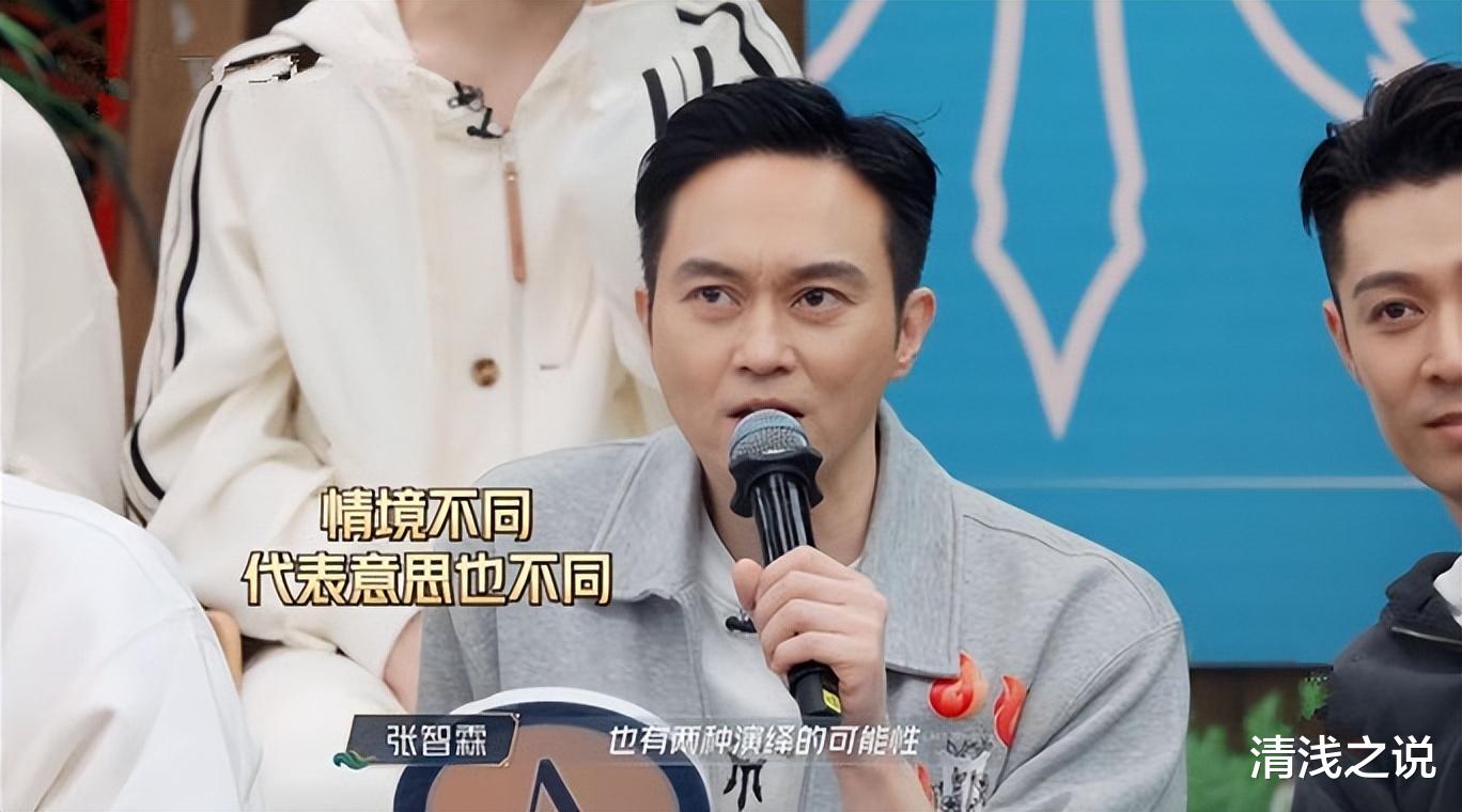 张智霖最开始也是选了B,听王铮亮这么说后,更加觉得是B。主持人早安让张智霖也说说为什么选B,但张智霖不敢,因为有家长,不敢答,他是妻管严嘛,哪里敢在这些问题上发表意见。