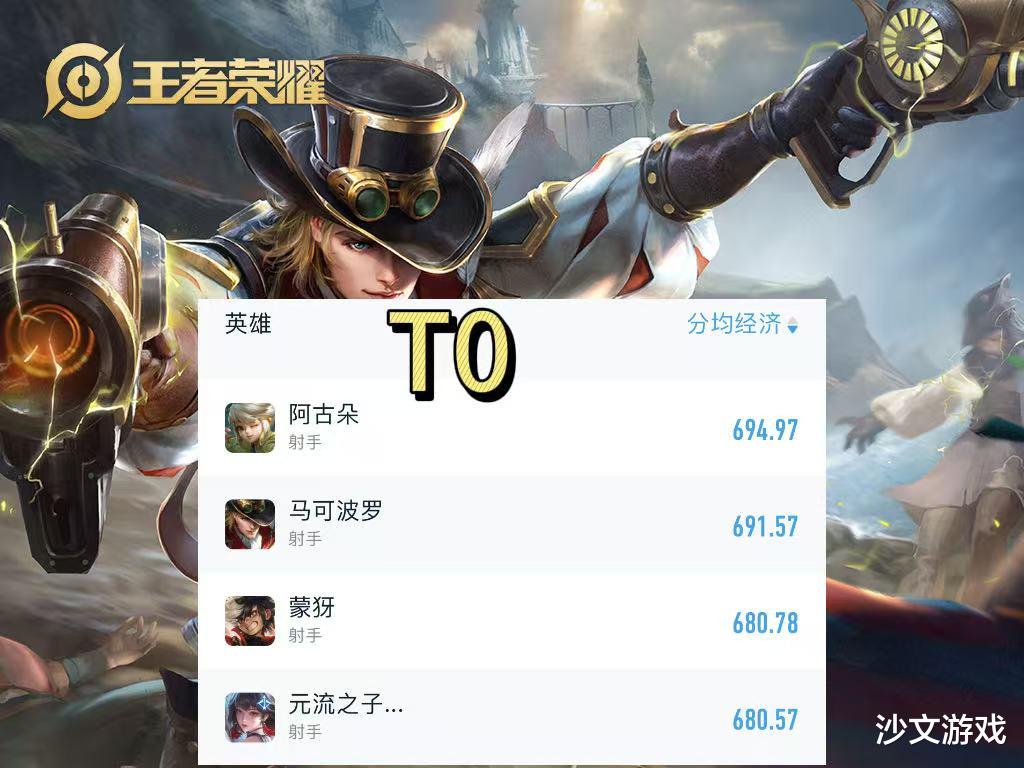 首先,排在发育路发育榜分均经济T0的英雄有阿古朵、马可波罗、蒙犽、元流之子(射手),这些英雄的分均经济在680局内金币至700局内金币之间。