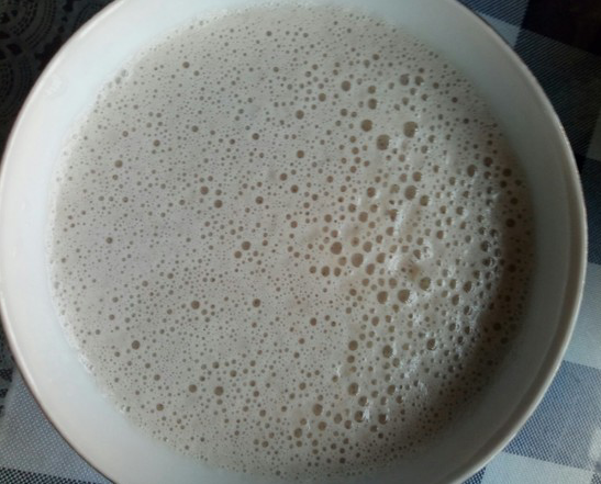 第五步、把煮好的奶倒入榨汁机内,按榨汁键20秒钟;