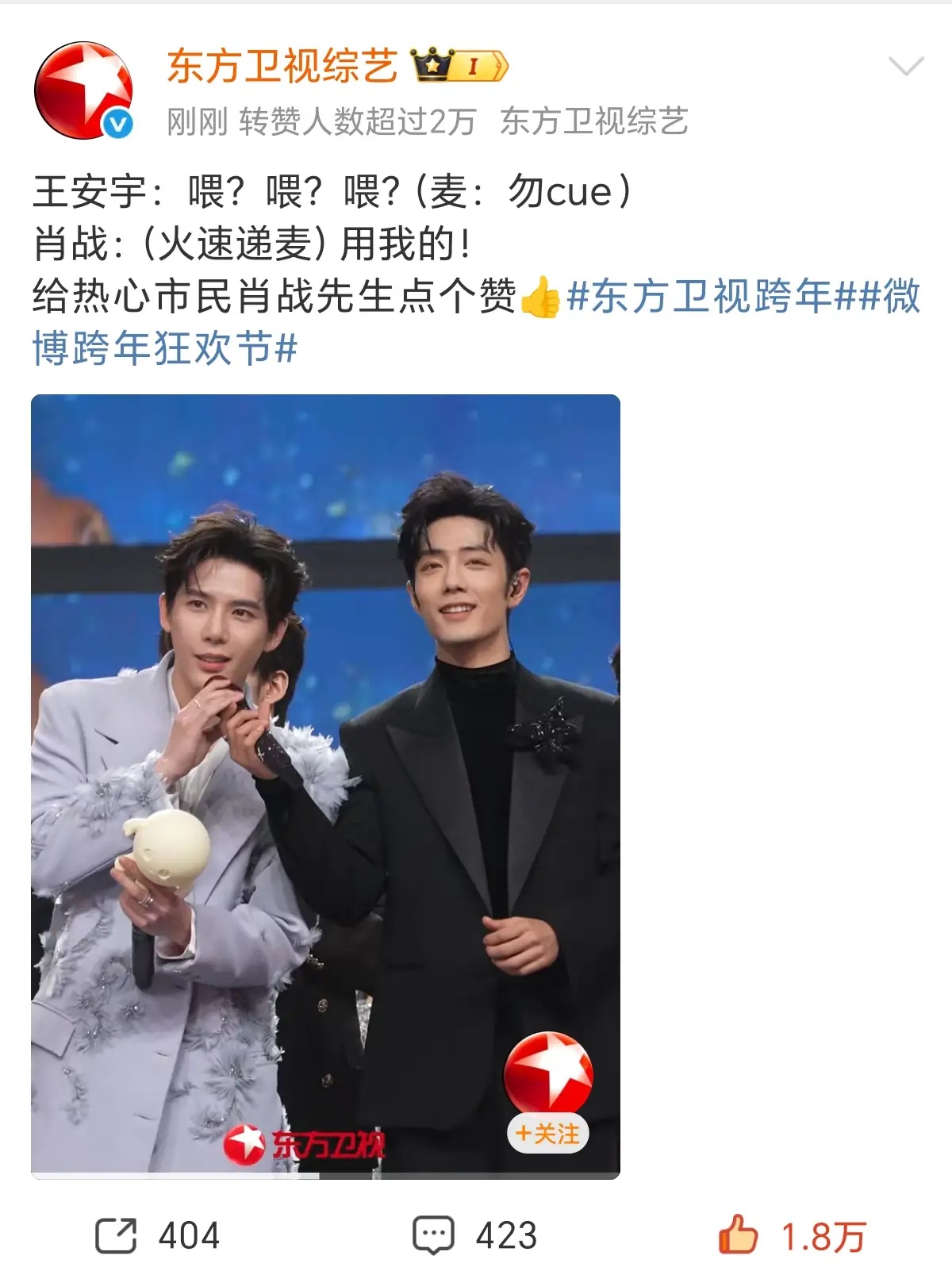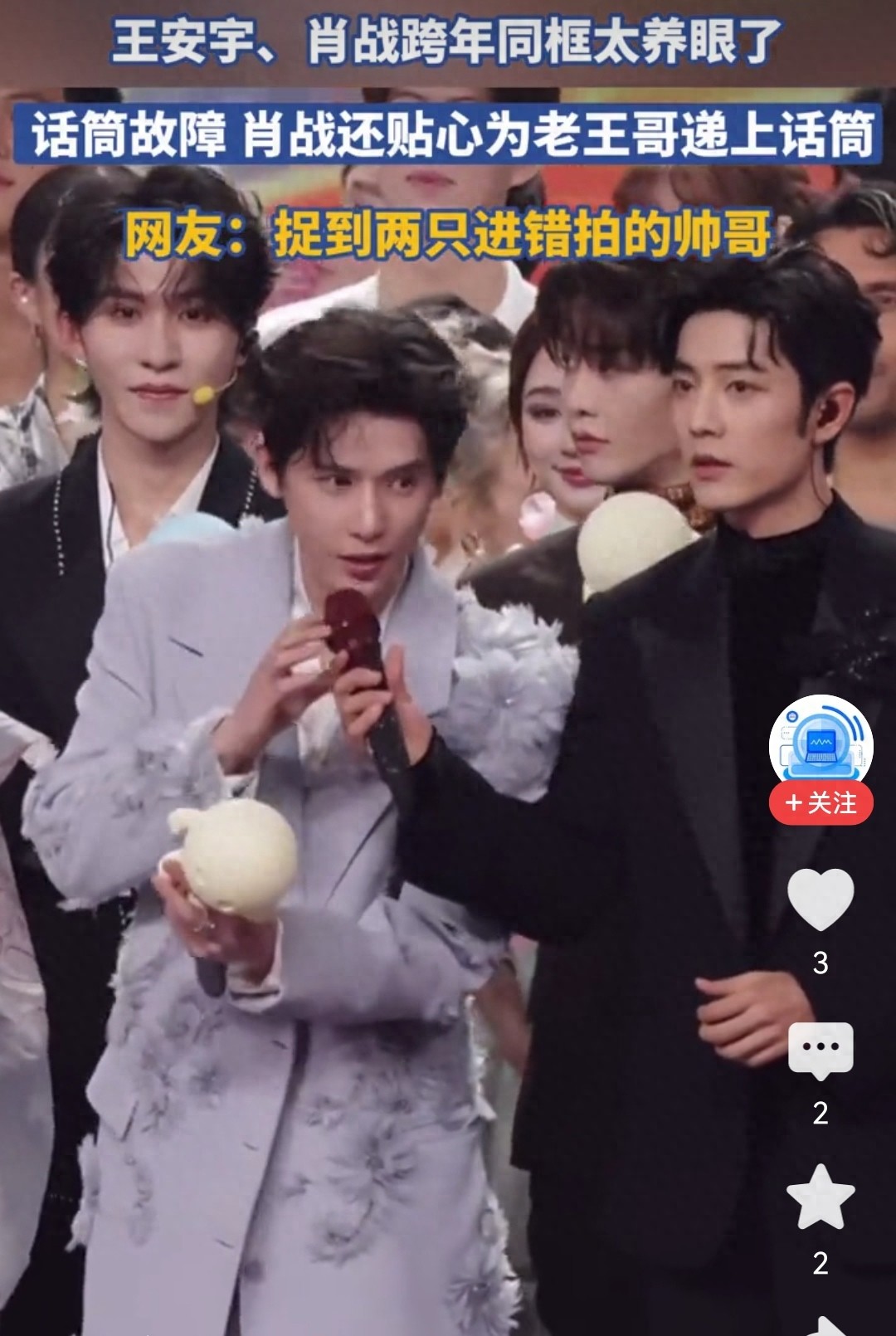 说实话,今年跨年夜的舞台名场面不少,但最戳我的,就是肖战给王安宇递话筒的那8秒。没有刻意炒作,没有抢镜博弈,就一个下意识的动作,直接刷屏全网,让我看清内娱最稀缺的温柔是什么样。