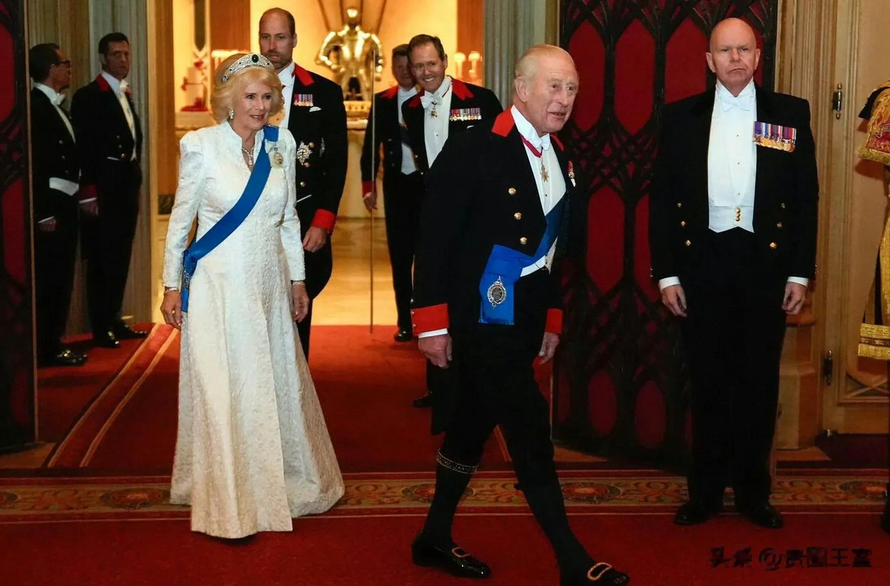 当地时间11月18日,英国王室成员在温莎城堡出席一年一度外交招待会,查尔斯三世、卡米拉王后、威廉王子一同出镜。