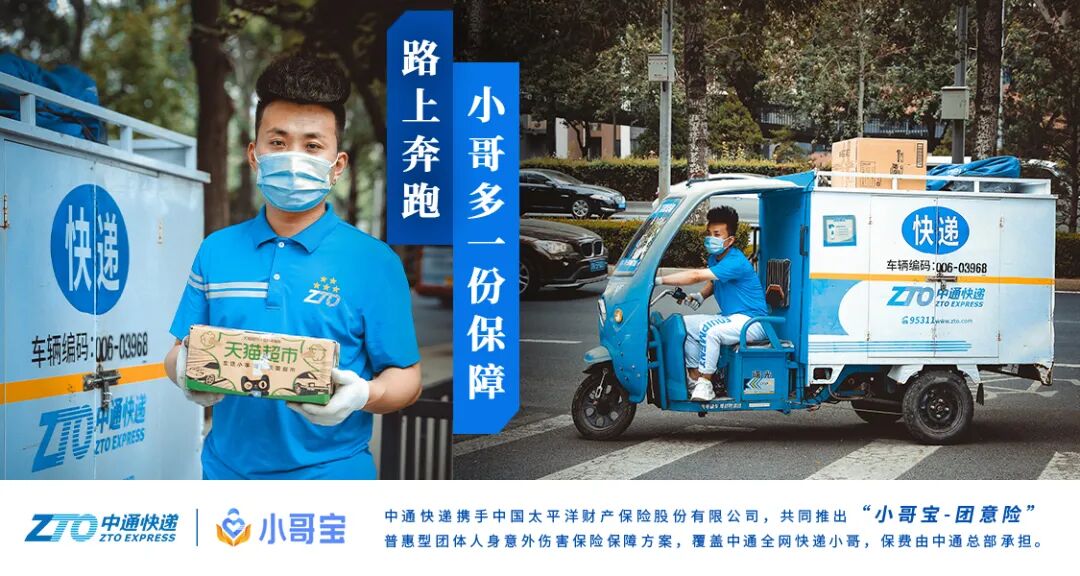 二是商业险。中通联合太平洋保险推出“小哥宝”意外险——零成本、零免赔、保额20万元、覆盖全场景,参保率100%,覆盖交通事故、装卸伤、极端天气作业等全场景风险,已累计赔付1928万元;