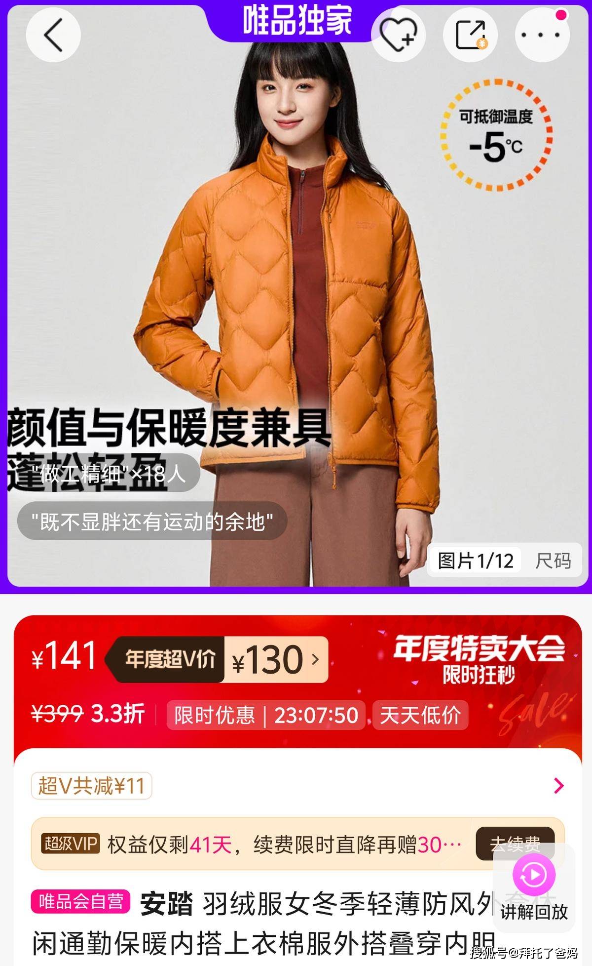不得不说,品牌硬货便宜卖,唯品会挺让人意外的。安踏还更是,以前总觉得它卖运动装备强,结果想不到羽绒服也可以做得这么好,把自身运动装备“基因”很好地植入了保暖装备中。这下这个国民运动品牌会更火无疑了。