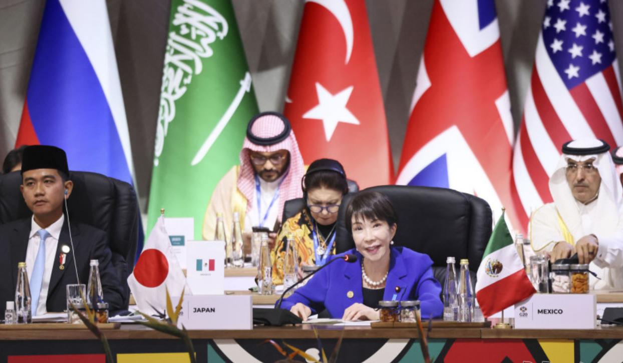 三来,高市早苗在大合照环节,也是随处可见的“被孤立”,比如被夹在土耳其和印尼代表之间尴尬陪笑,插不进去一句话。