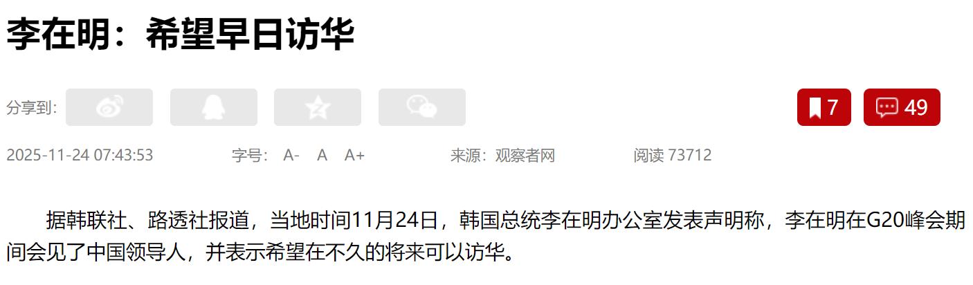 “全面恢复”这四个字分量可是非常重,说明李在明也非常清楚,中方愿意赏脸,既出席APEC峰会,又对韩国进行国事访问,给足了他面子,而他也准备回馈中国。