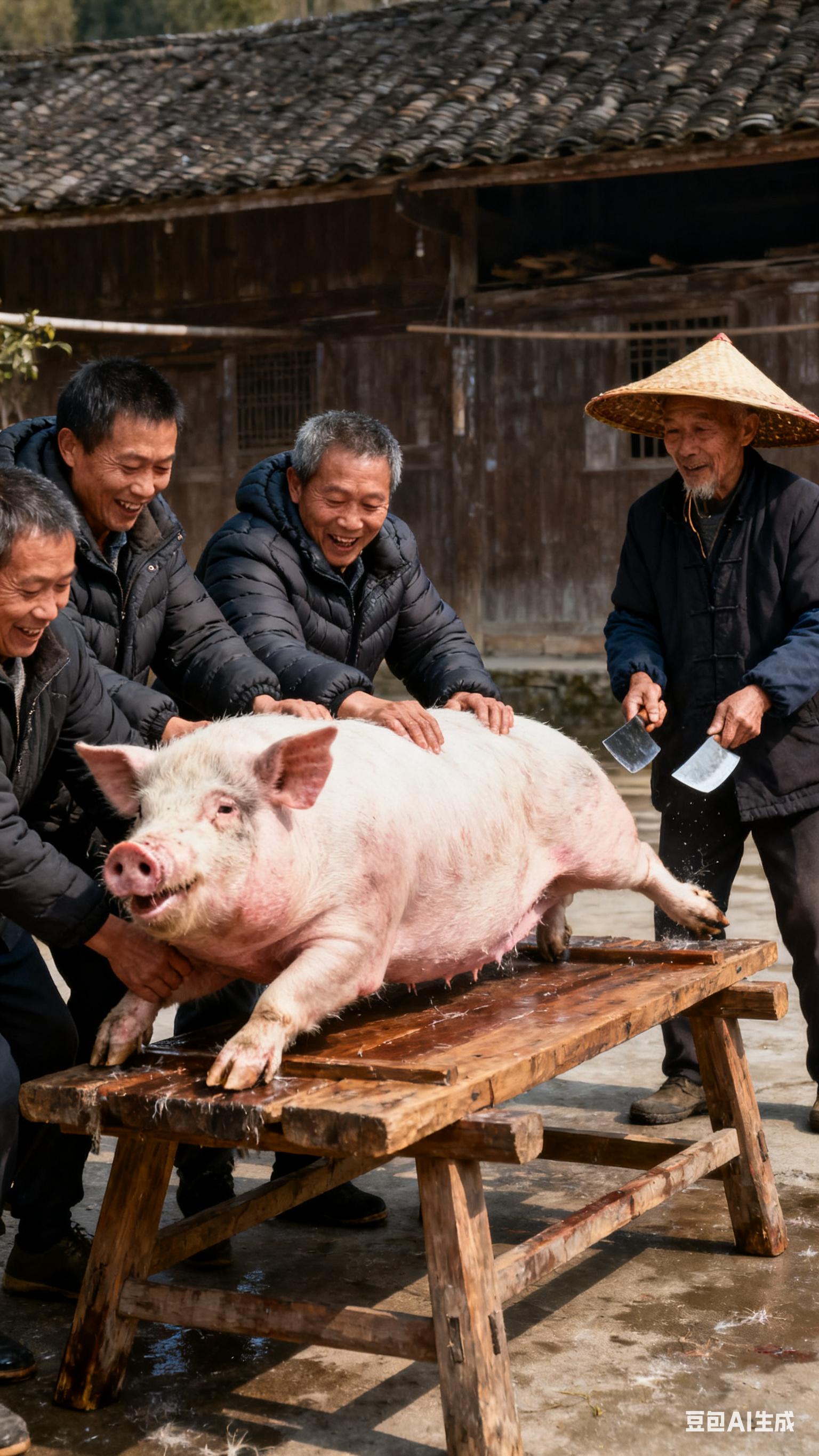 更戳人的是真实生活的稀缺性。在滤镜盛行、剧本扎堆的网络世界,“真实性贫困”成了很多人的困扰。而“按年猪”没有精心编排,猪的挣扎、壮汉的协作、村民的淳朴笑脸,都是粗粝又鲜活的生活本真。都市白领刷到视频时,会被这种与PPT、KPI无关的烟火气震撼;年轻人惊叹于“没有剧本的生活比追剧还刺激”,这种不加修饰的真实,构成了强烈的情感冲击,成为数字时代的心理代偿。