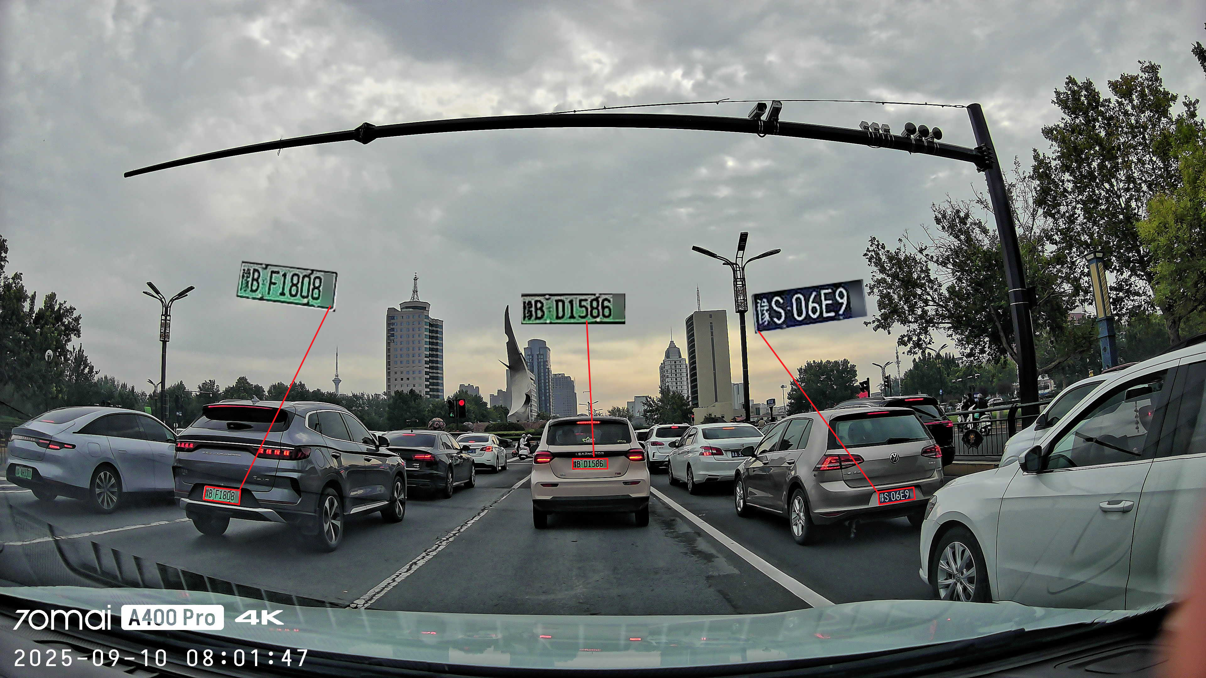在自己的行车道和左右两侧的车道当中,车牌号可以非常清晰的辨识出来。