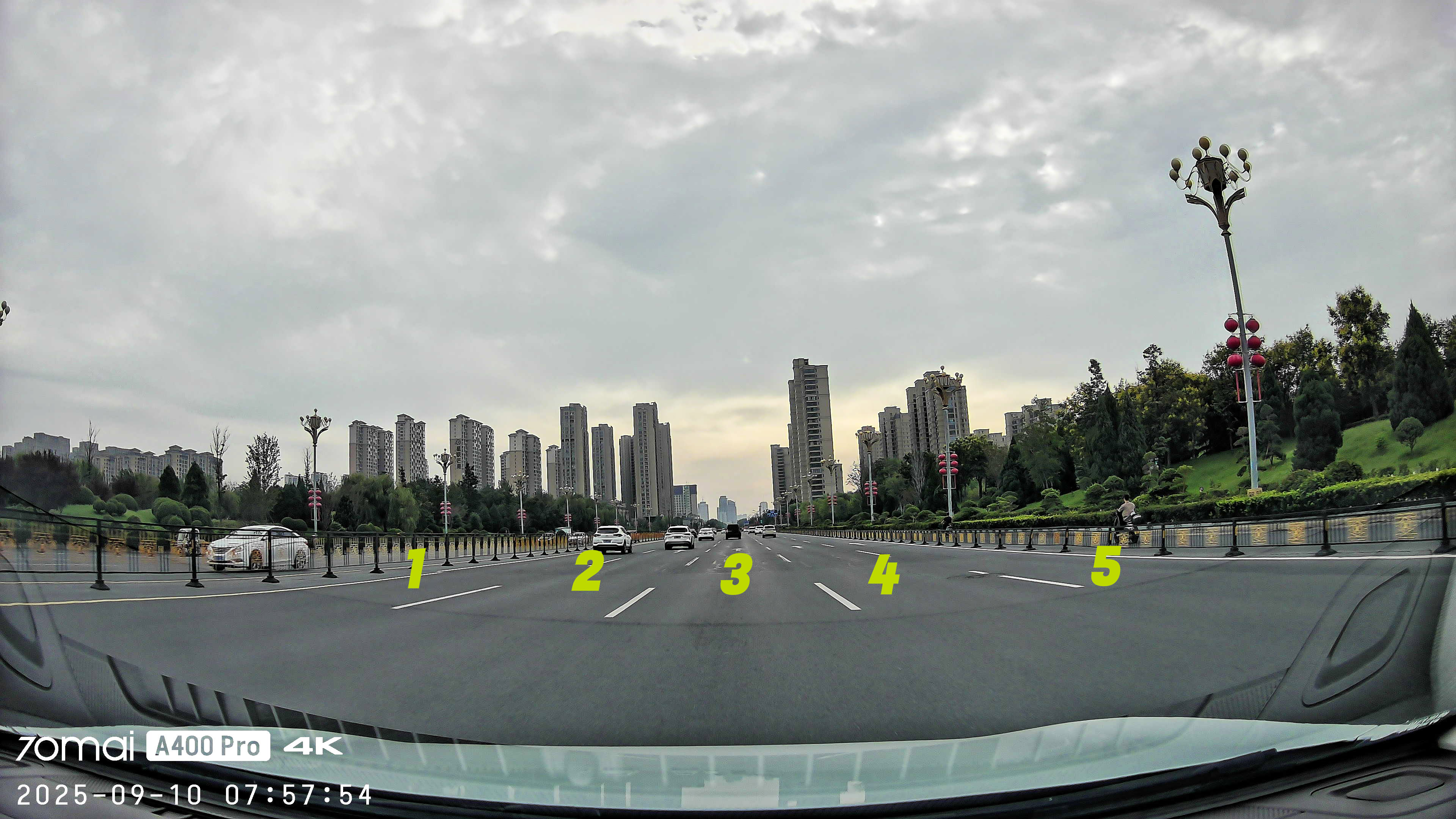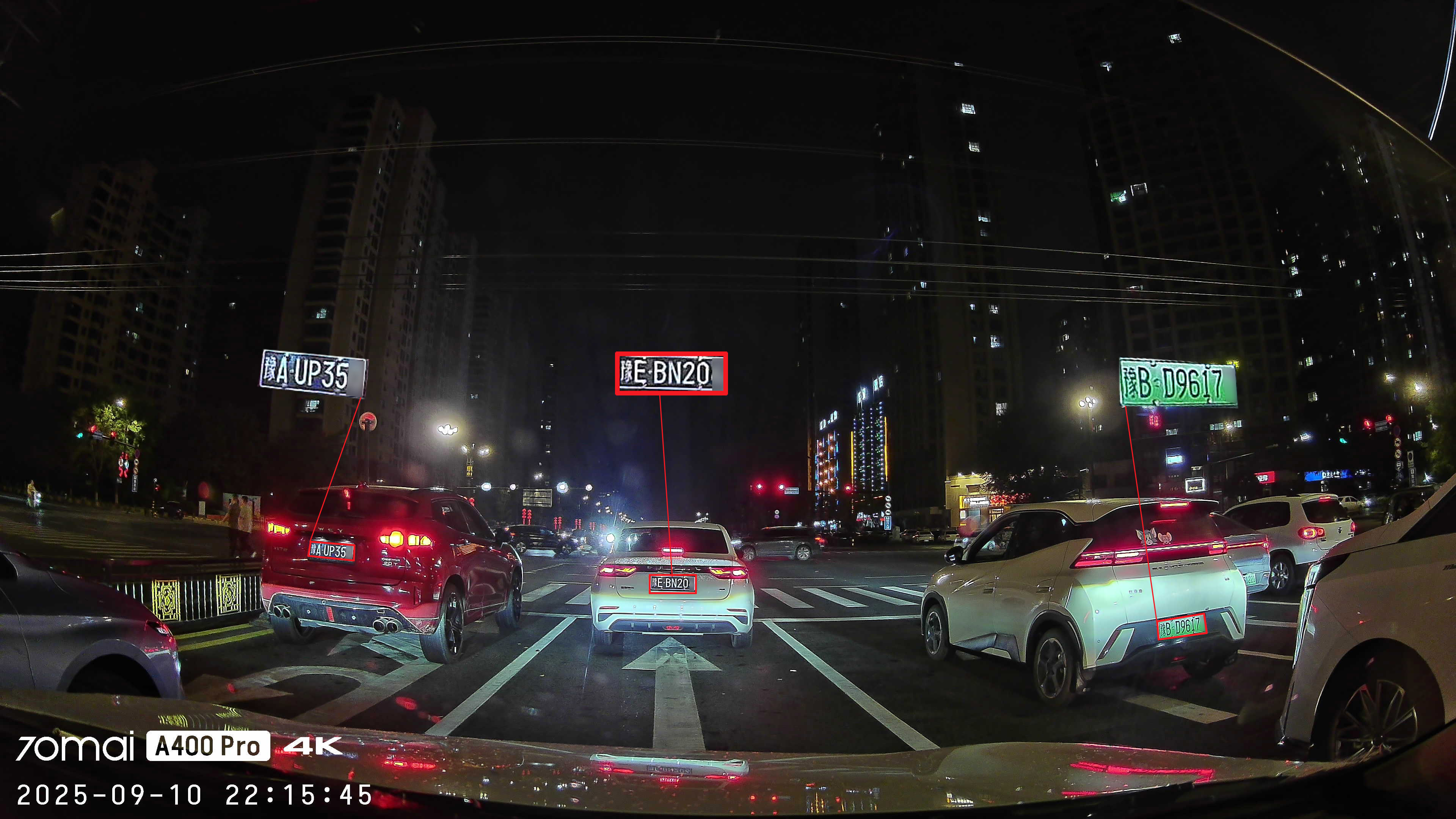 在夜间环境下,得益于70迈自研的影像算法,拍摄效果依然那么清晰,三个车道的车牌号依然清晰可见。