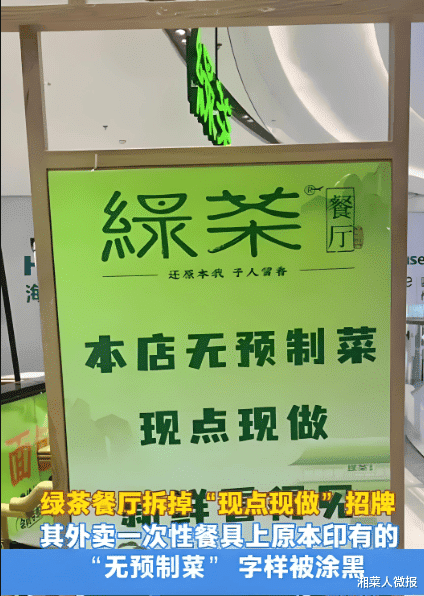 近日,绿茶餐厅悄然撤下门店外“本店无预制菜,现点现做”的广告语,甚至涂黑外卖餐具上的“无预制菜”字样,证明了 "鸵鸟战术" 的失效。