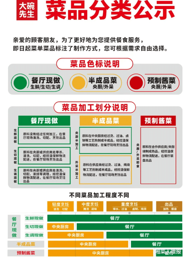 其实,从去年开始,一些有远见的餐饮品牌已经开始主动公示预制菜使用情况。