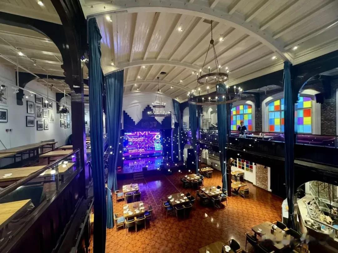 如今踏入这座百年建筑,每一处细节都镌刻着历史痕迹。一楼的宴会大厅保留着当年的宽敞格局,这里曾是水兵观影、举办派对的场所,如今的光影咖啡座沿用了旧时的木质廊柱与玻璃窗,阳光透过窗棂洒落,仿佛能听见百年前的欢声笑语。丈量君曾经在一楼大厅晚上吃过饭,歌手定时驻唱,酒水还可以,价格小贵。