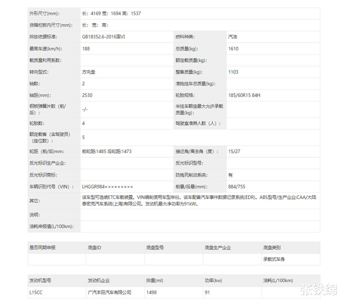 动力方面,根据此前的申报信息显示,新款车型继续搭载1.5L发动机,最大功率91kW,传动系统匹配的是CVT变速箱。