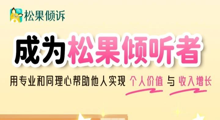 目前松果倾诉APP内的倾听者认证数量已超过10万人,这些“倾听者”可以在情感、婚姻、家庭、职场等方面为有困惑的人提供帮助,并且为自己增加了一份客观的收入。如果你也想成为其中的一员,欢迎加入松果倾诉成为一名倾听者!