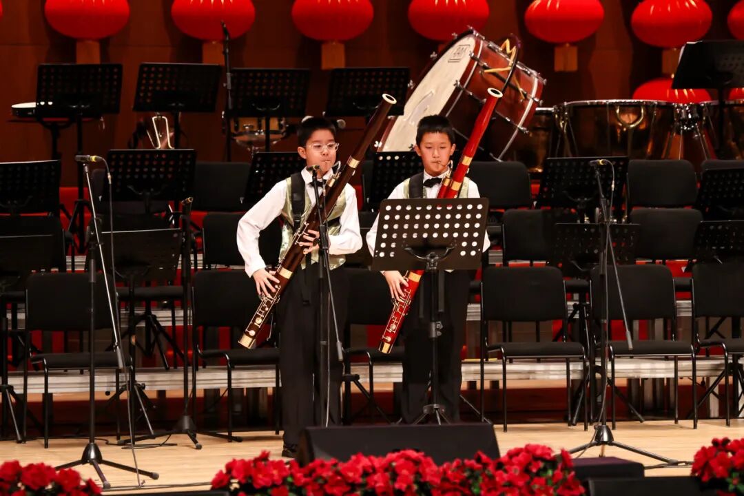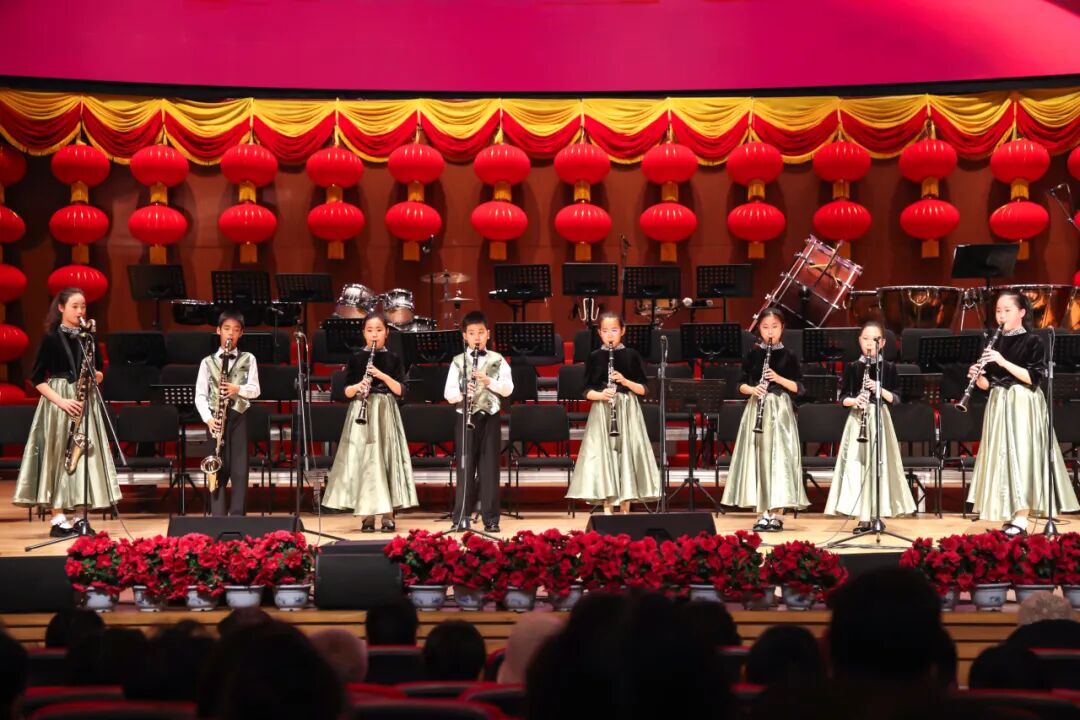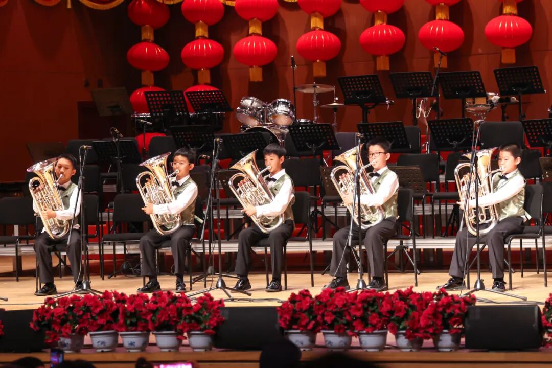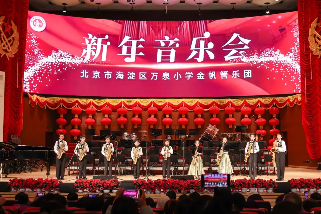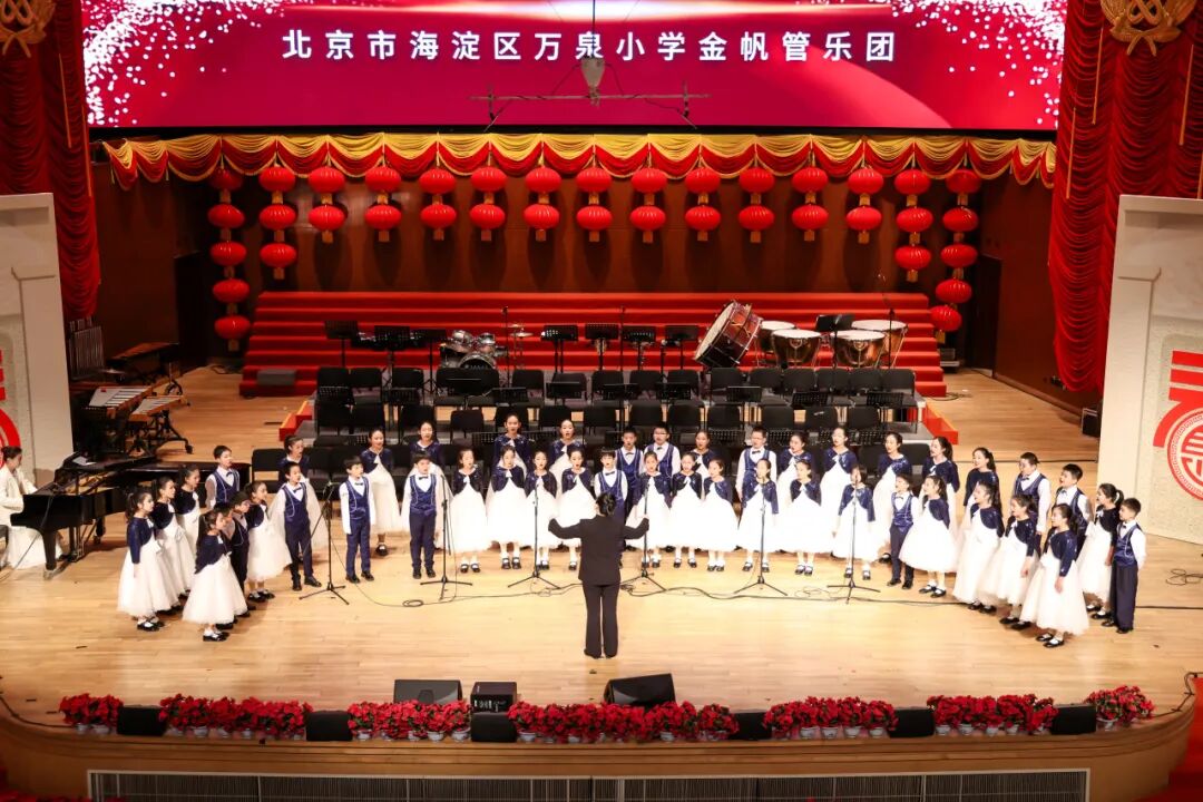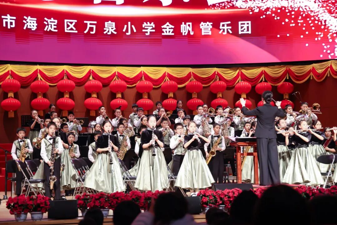 演出在万泉小学金帆管乐团与中关村中学金帆管乐团联袂演奏的《春节序曲》《豪勇七杰》中拉开序幕。