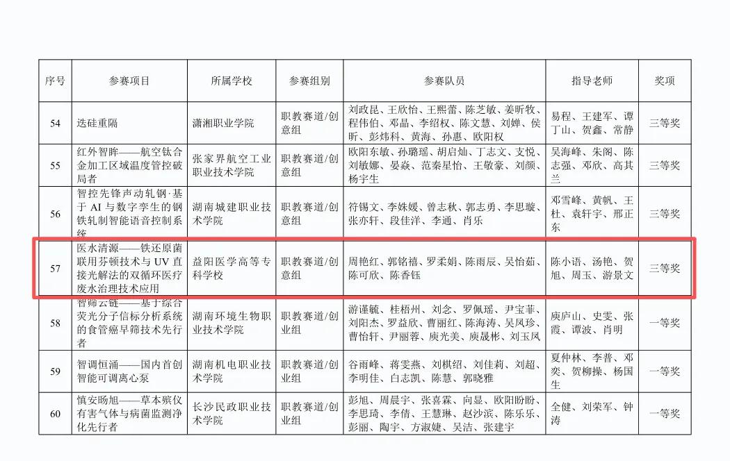 其中,益阳医学高等专科学校“无痛采血——推进舒适化多场景采血技术革新”项目、“医水清源——铁还原菌联用芬顿技术与UV直接光解法的双循环医疗废水治理技术应用”项目分别获该赛道创意组二等奖、三等奖,“先锋‘智’检:光声——拉曼协同驱动的口腔癌AI智能诊断系统”获该赛道创业组二等奖。