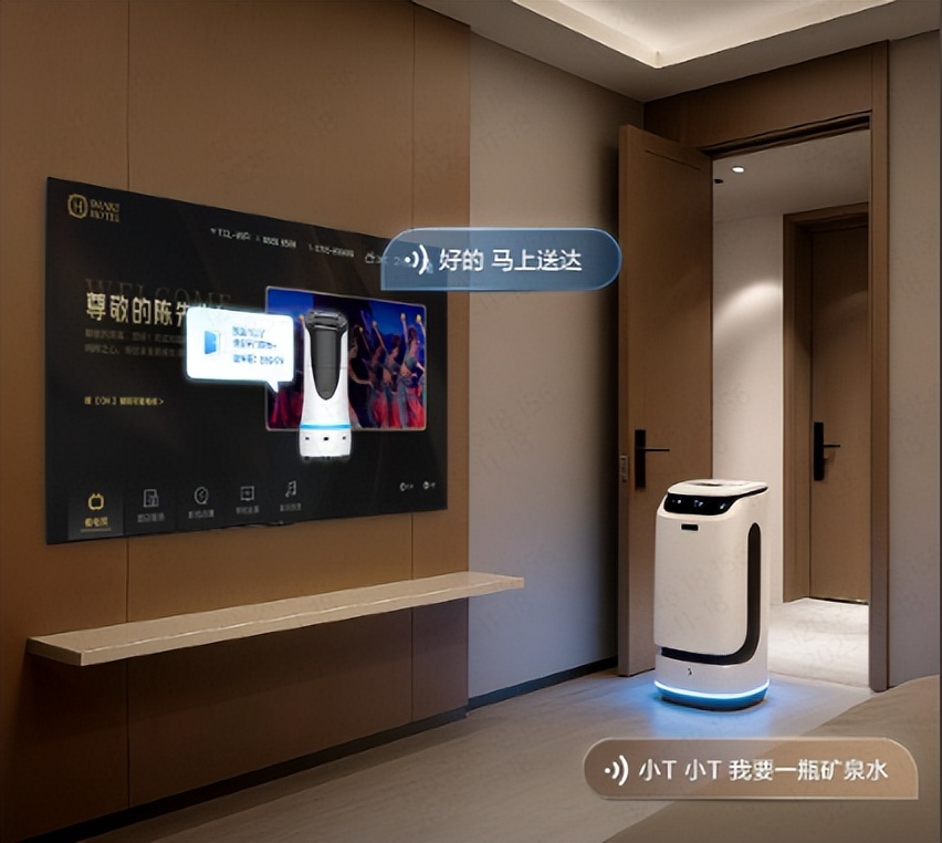 TCL智慧酒店解决方案的创新不止于客房内部。通过酒店电视所搭载的AI语音大模型,住客可以查询送物机器人实时位置、预约智慧洗衣房服务、获取酒店设施信息、查看设备洗衣房的设备状态等,大大扩展了智慧服务的边界。以给住客送物服务为例,当客人需要加瓶水时,只需说“小T小T,我需要一瓶水”,系统便会自动调度机器人提供送物服务,住客通过电视屏幕即可查看送物进度,避免住客等待的焦虑。这种一站式的服务体验,让客人真正实现了“动口不动手”的便捷住宿。